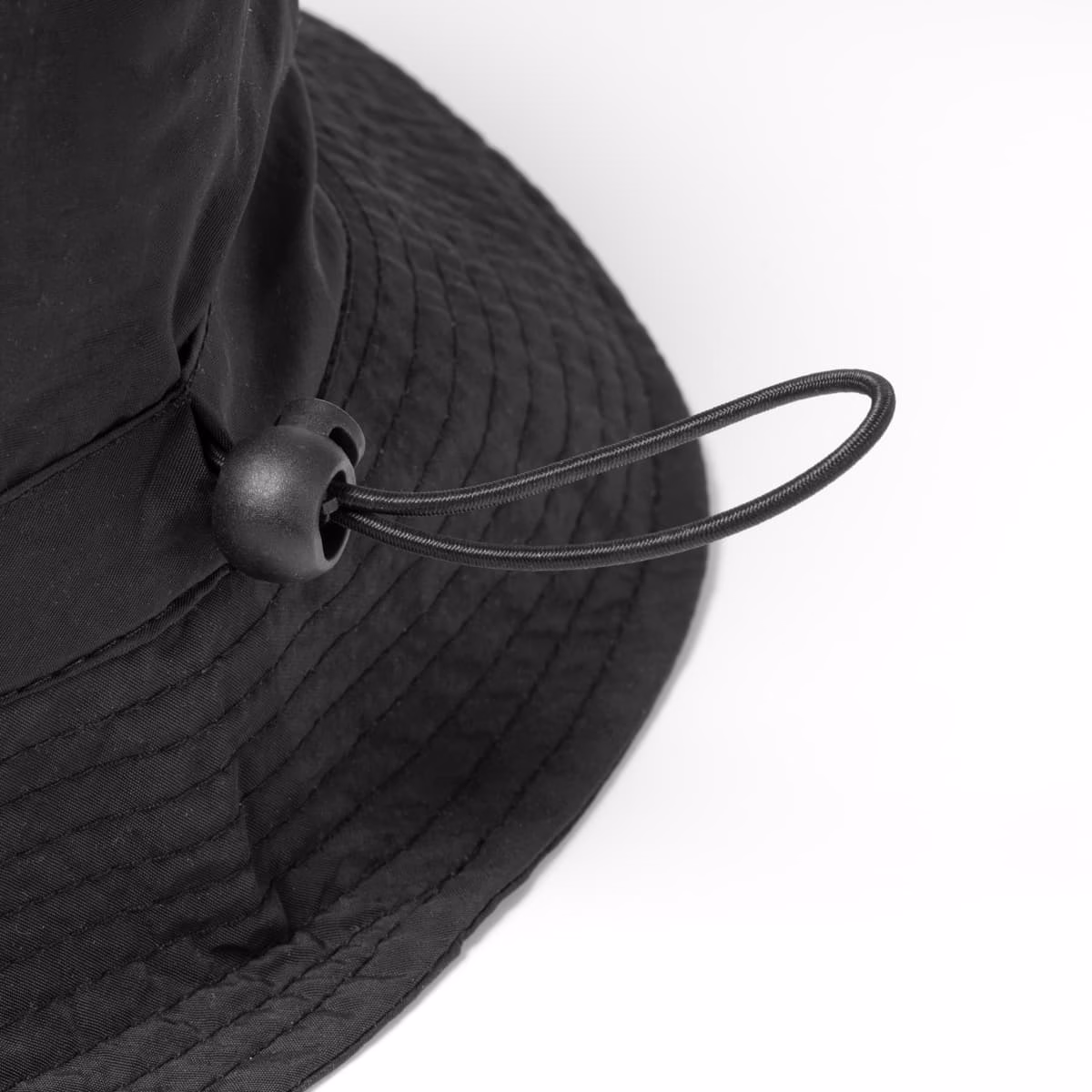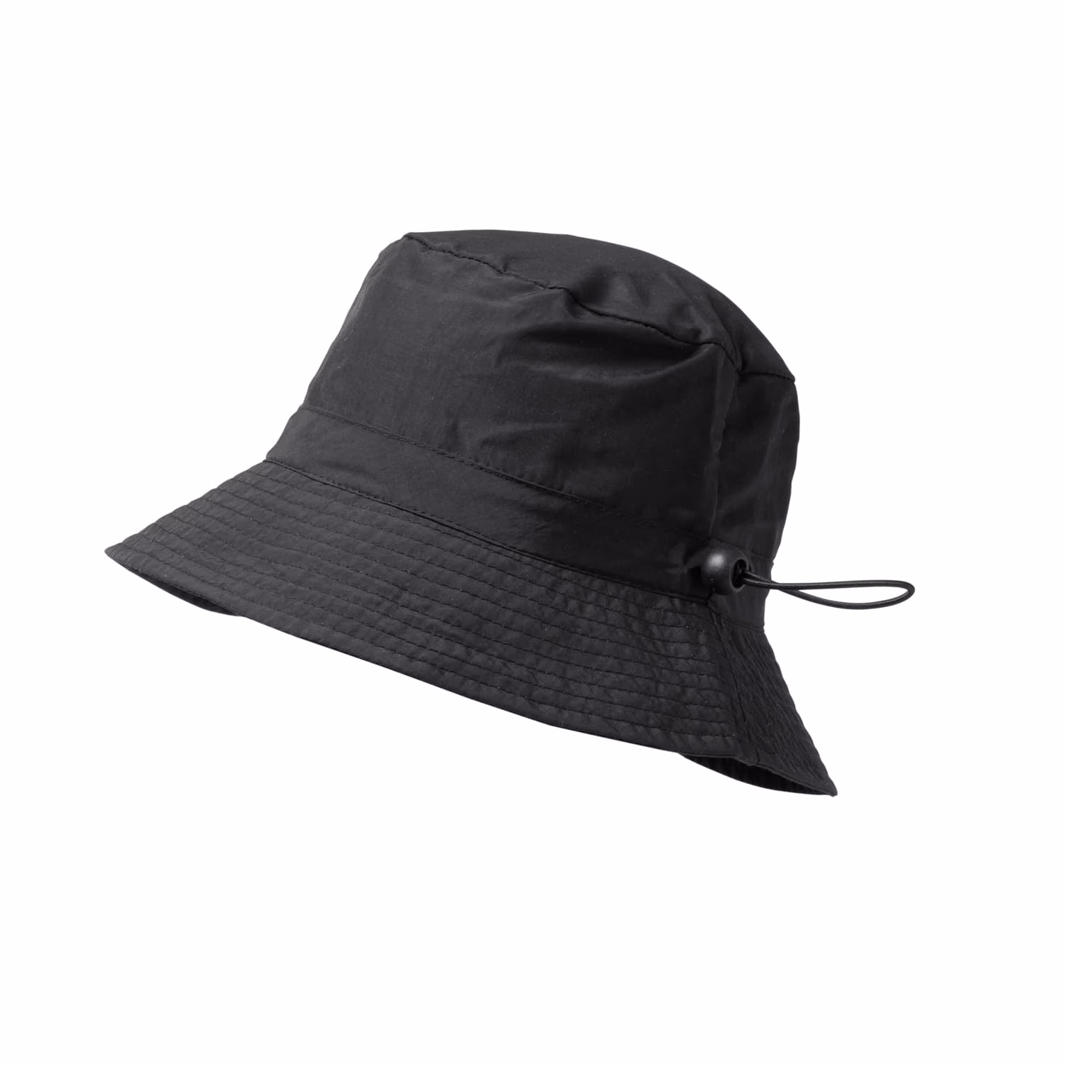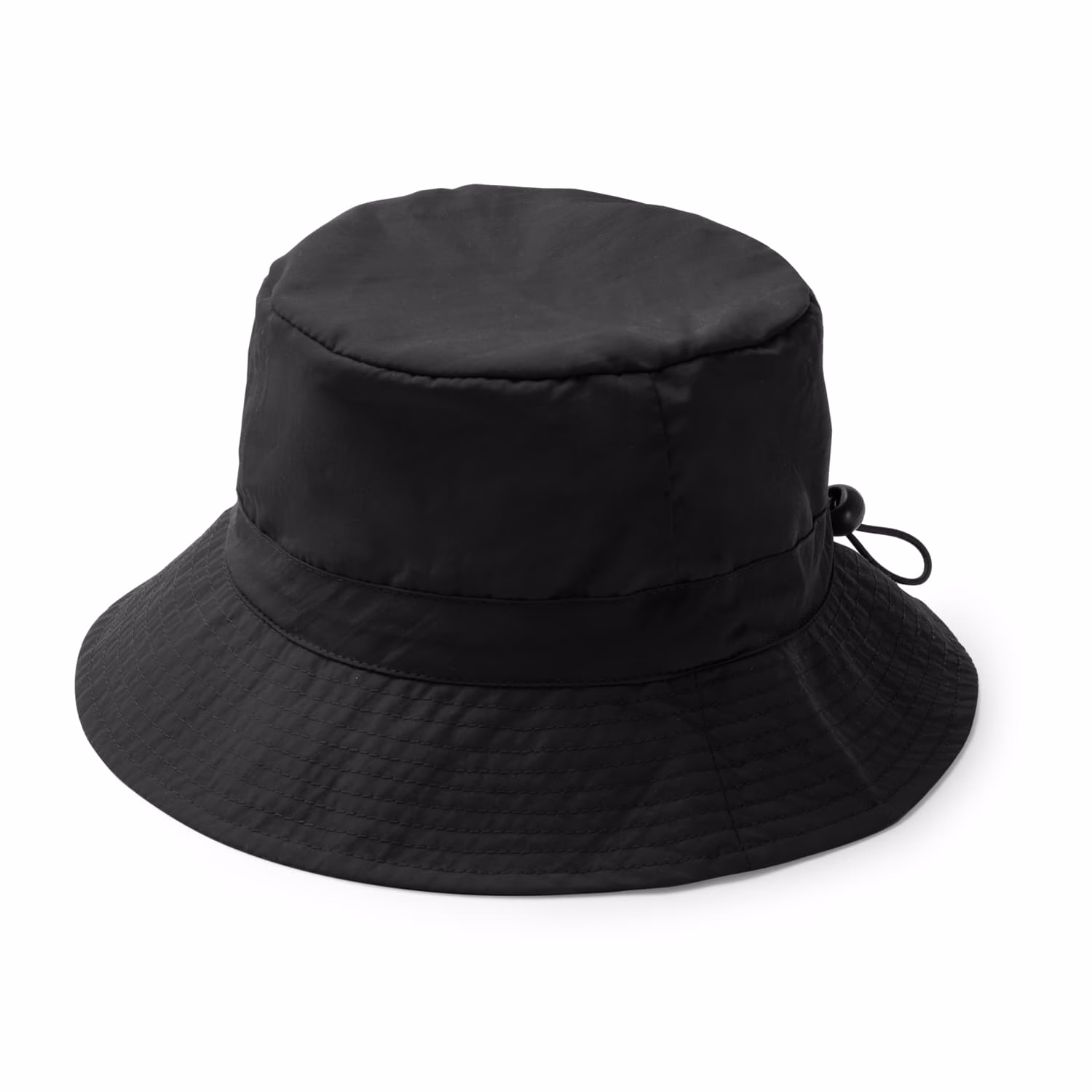 Gorro estilo bob resistente al agua realizado en microfibra. Cinta elástica ajustable en parte trasera.