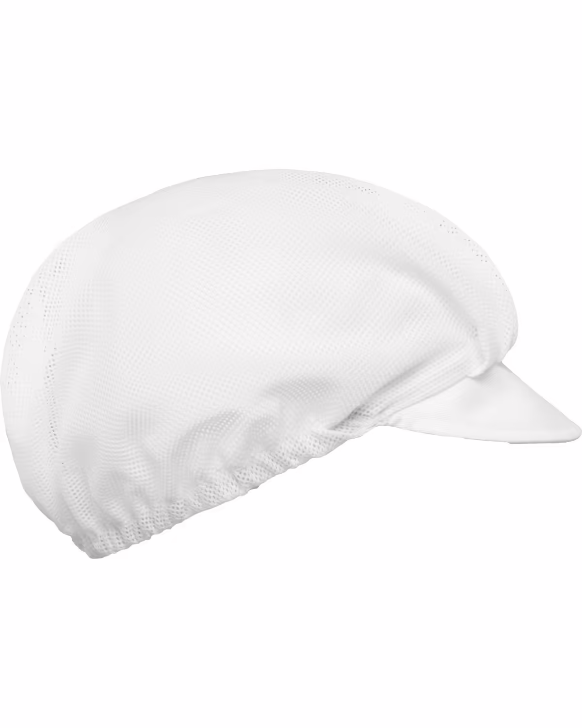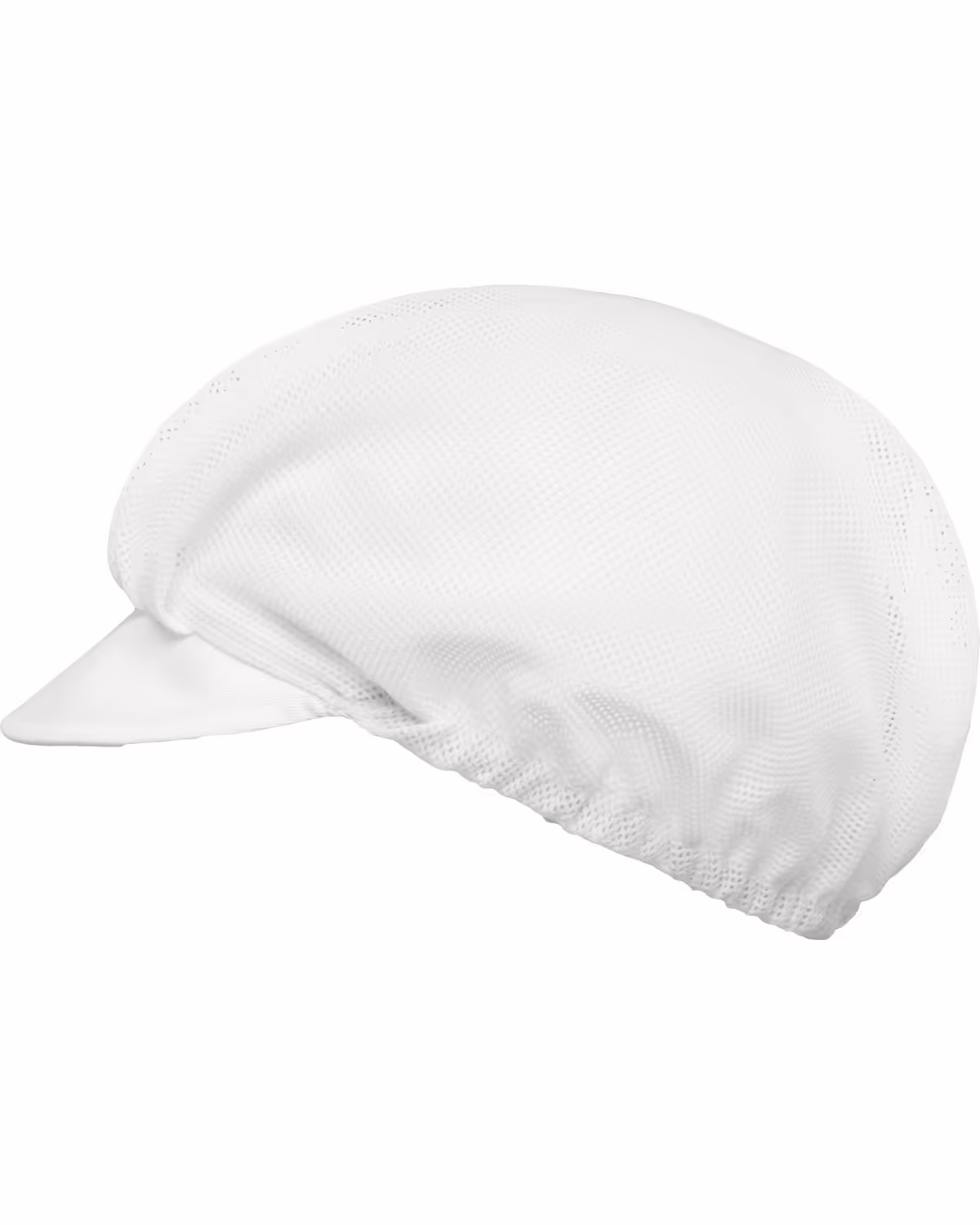Cofia con rejilla recoge pelo y visera corta rígida.