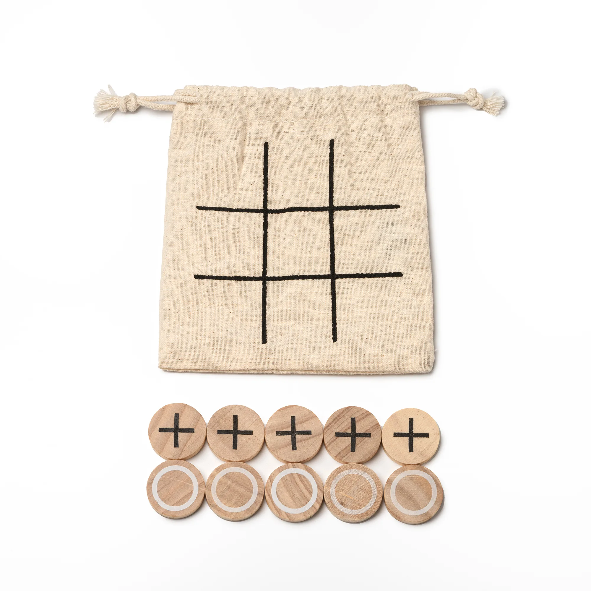 Juego 3 en raya realizado en madera. Incluye 10 fichas presentadas en bolsa de algodón natural. Un juego de mesa clásico que no puede faltar, diviértete en cualquier lugar.