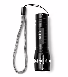 Linterna LED realizada en aluminio. 8 LEDS con 250 lumens. 3 intensidades: Fija, emergencia y lateral con 100 lumens. Batería recargable de 400 mAh.
