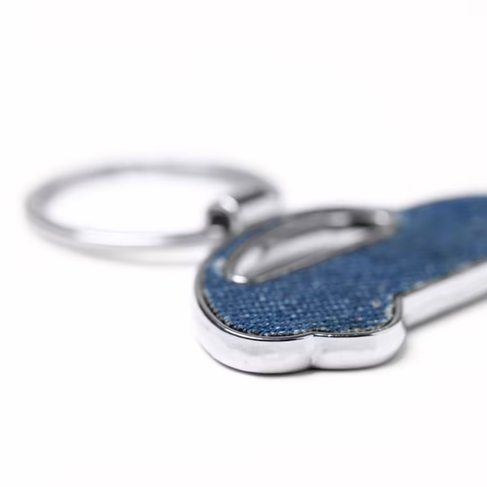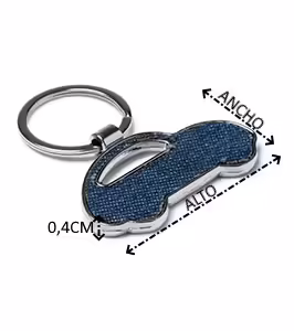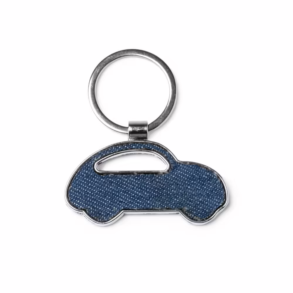 Llavero en forma de coche realizado en tejido vaquero.