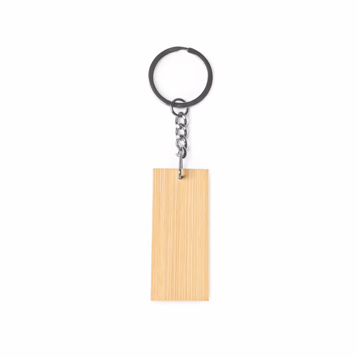 Llavero realizado en bambú y acero en dos formatos. Ideal para maracaje láser.