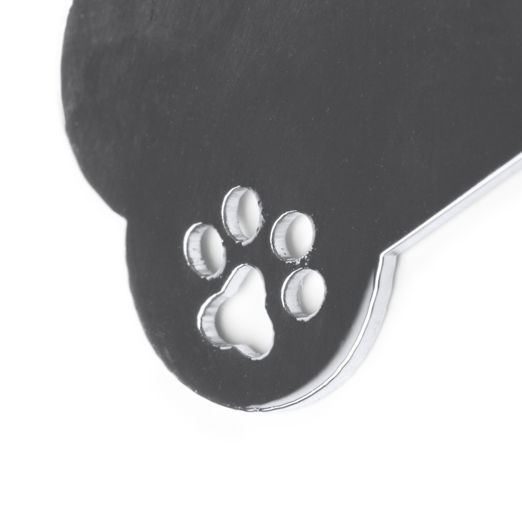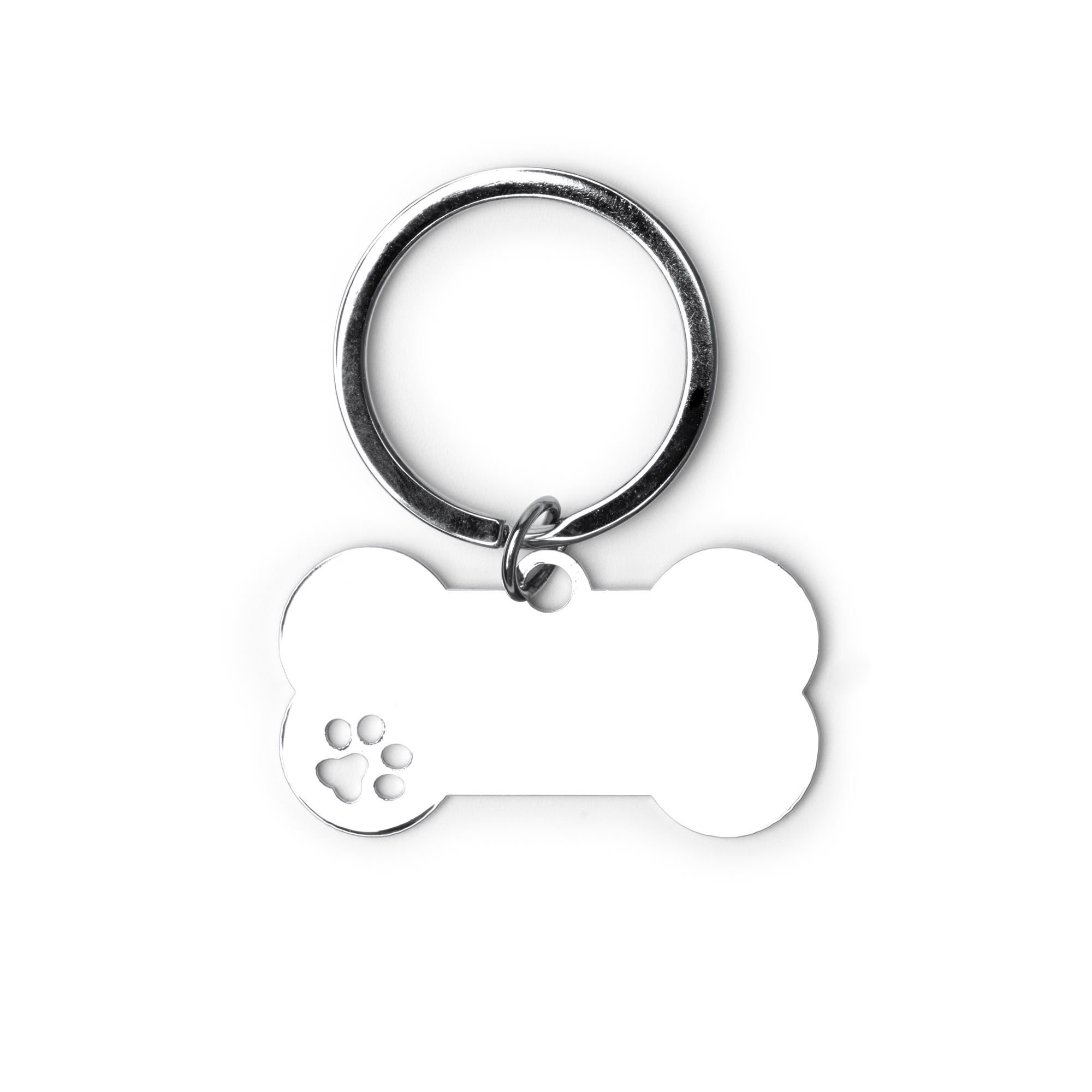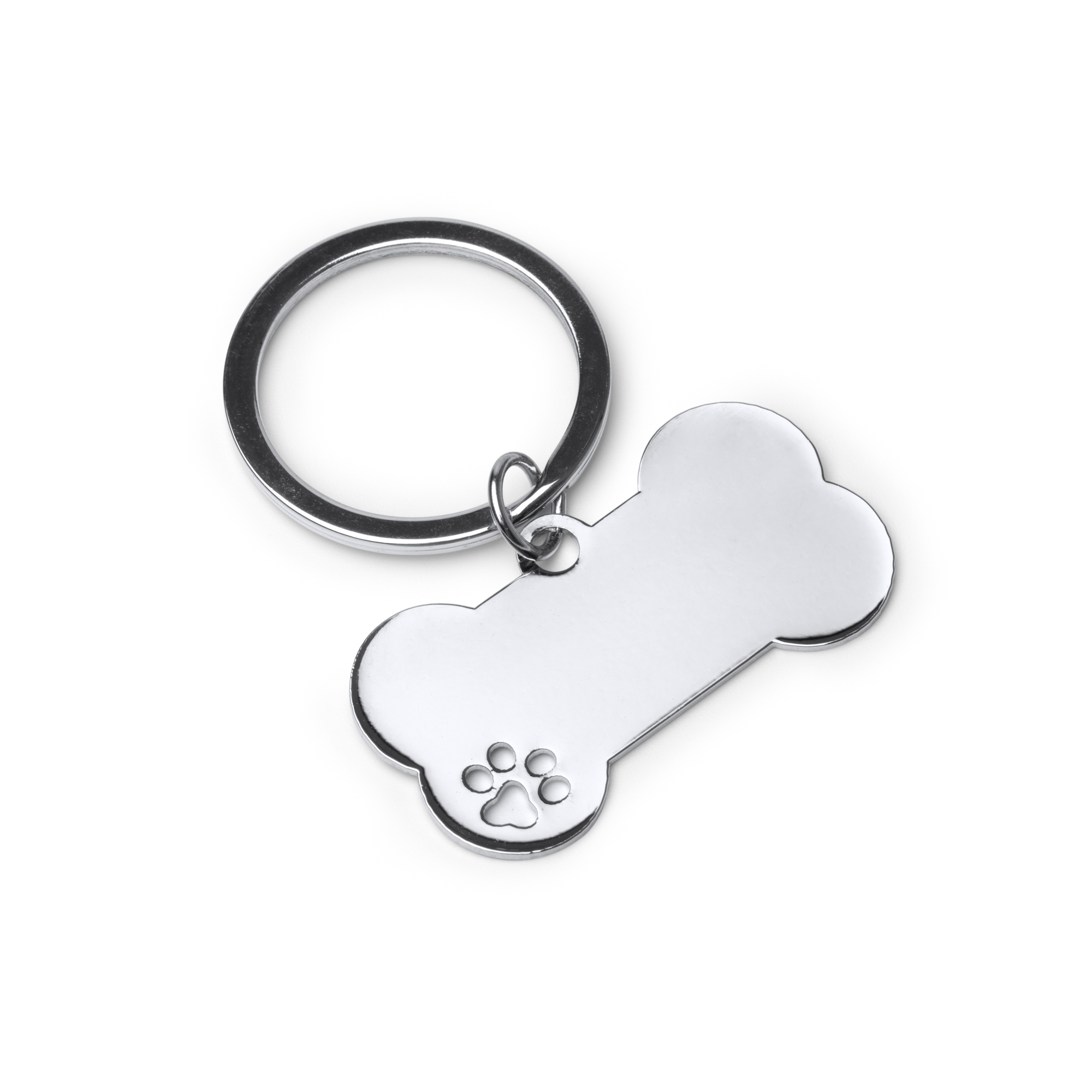 Llavero de metal 201 con diseño en forma de hueso. Cuenta con un detalle en el lateral en forma de huella.