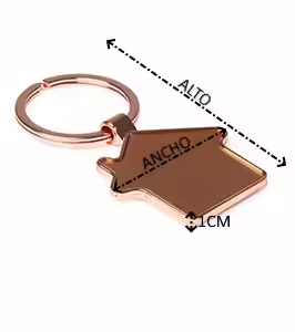 Llavero metálico en forma de casa con recubrimiento de cobre.