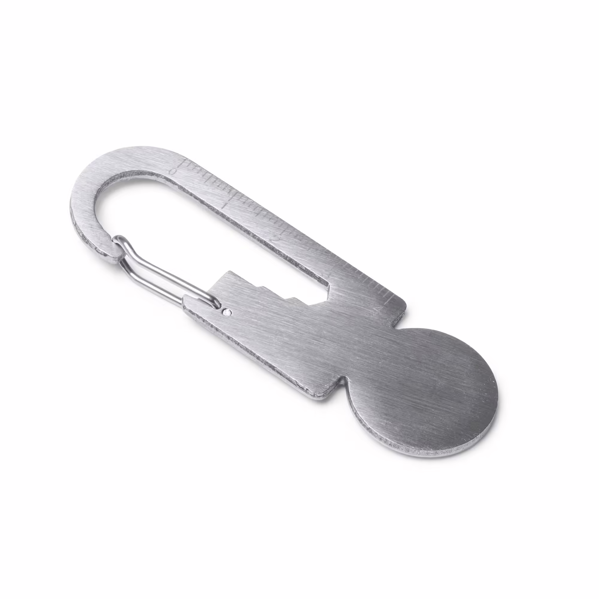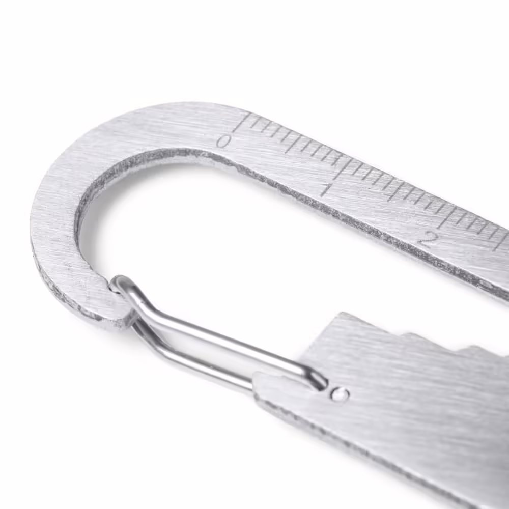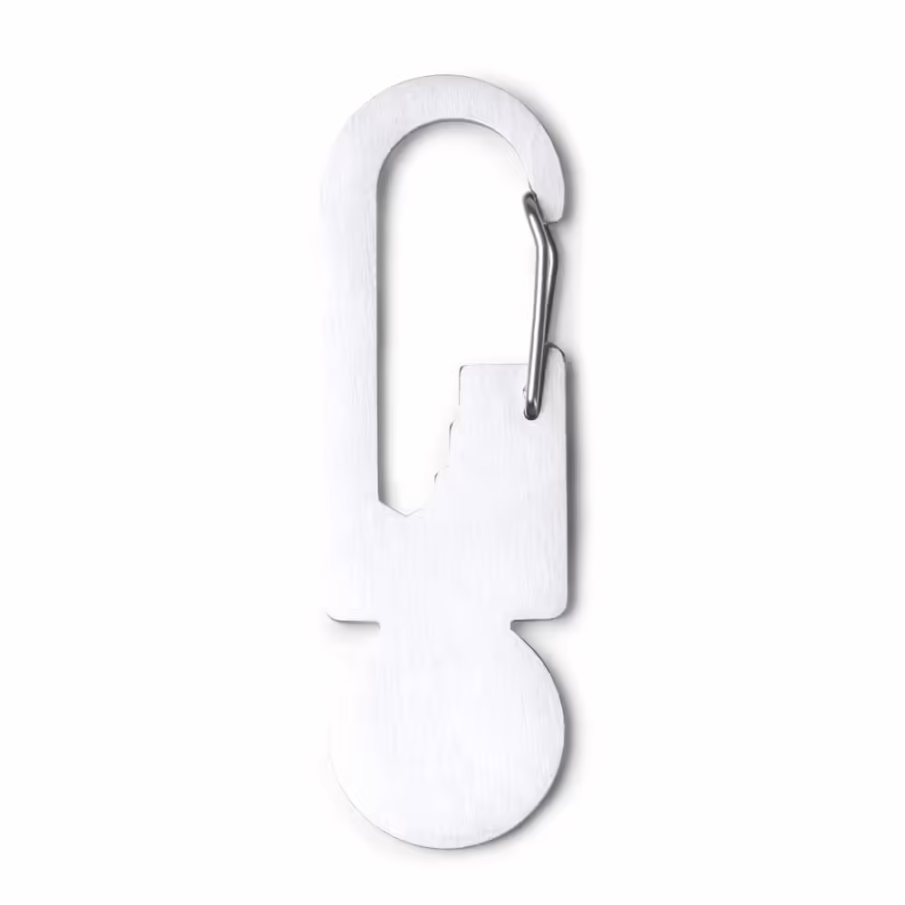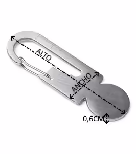 Llavero multiherramienta con mosquetón y moneda para el carro de la compra realizado en acero inoxidable 304.
