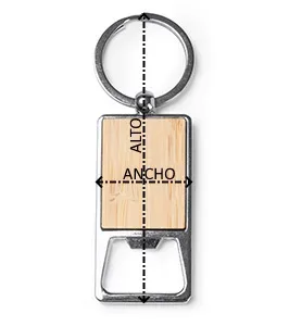 Llavero abridor de bambú y metal cromado.