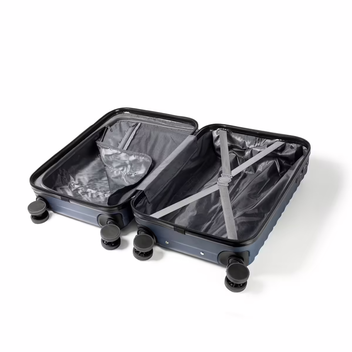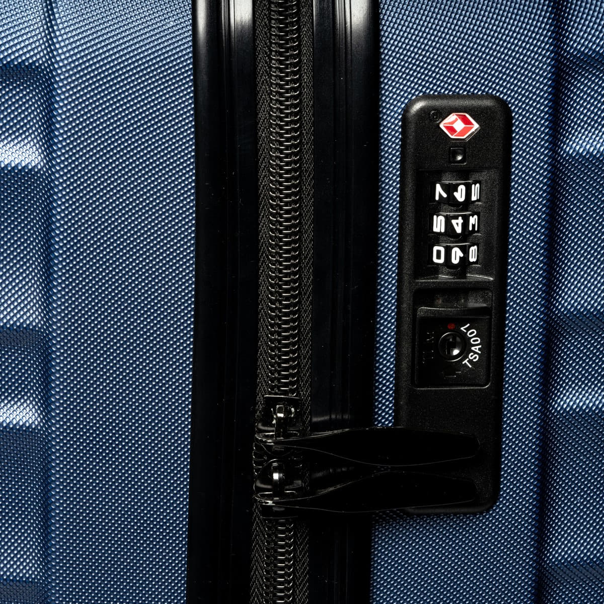 Trolley rígido en resistente ABS. Interior con dos compartimentos principales y bolsillo de rejilla auxiliar. Incluye cierre de seguridad TSA integrado.