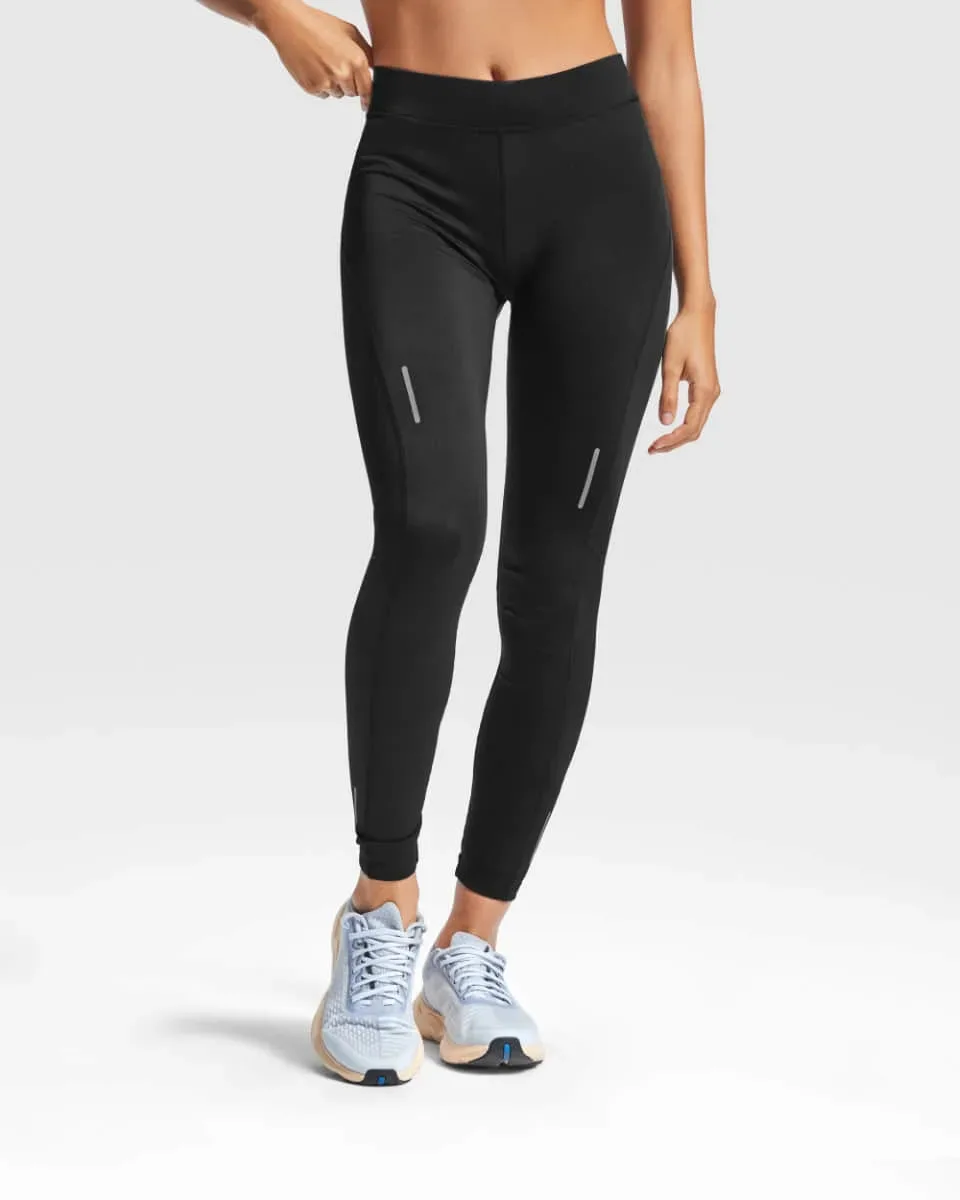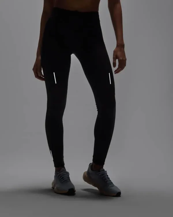 Malla larga técnica para mujer con cinturilla elástica y cordón interior cruzado para facilitar ajuste. Detalles reflectantes. Bolsillo interior delantero. Tejido elástico y adaptable al cuerpo