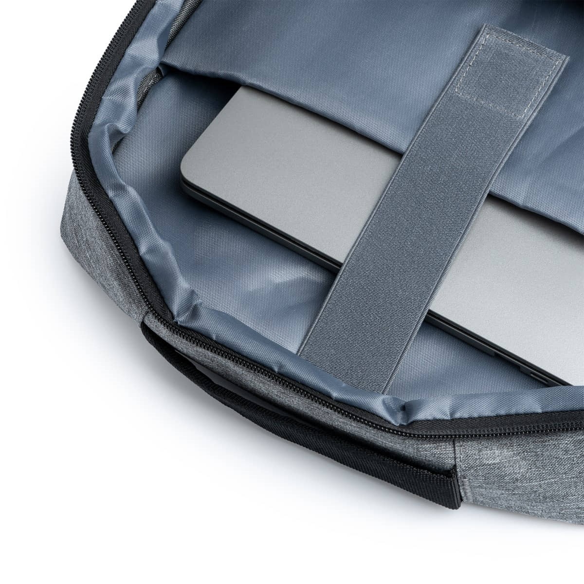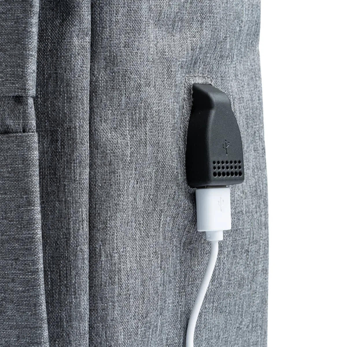 Mochila promocional realizada en poliéster 300D. Acabado OXFORD de diseño innovador. Bolsillo principal acolchado ideal para portátil y dos bolsillos frontales con elegantes tiradores. Incluye salida USB para conectar un power bank (no incluido) Tiras y espalda acolchada.