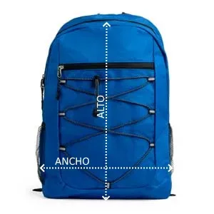 Mochila deportiva realizada en poliéster 600D. Bolsillo principal y bolsillo frontal con cierre de cremallera. Compartimento de cuerda elástica frontal con bolsillos laterales de rejilla. Espalda y tiras acolchadas.