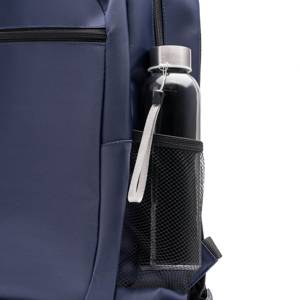 Mochila ejecutiva realizada en nylon reciclado. Gran compartimento prinicpal y bolsillo acolchado para portátil 15″. Bolsillo exterior y 2 bolsillos laterales. Asas y espalda acolchadas. Cinta para trolley.