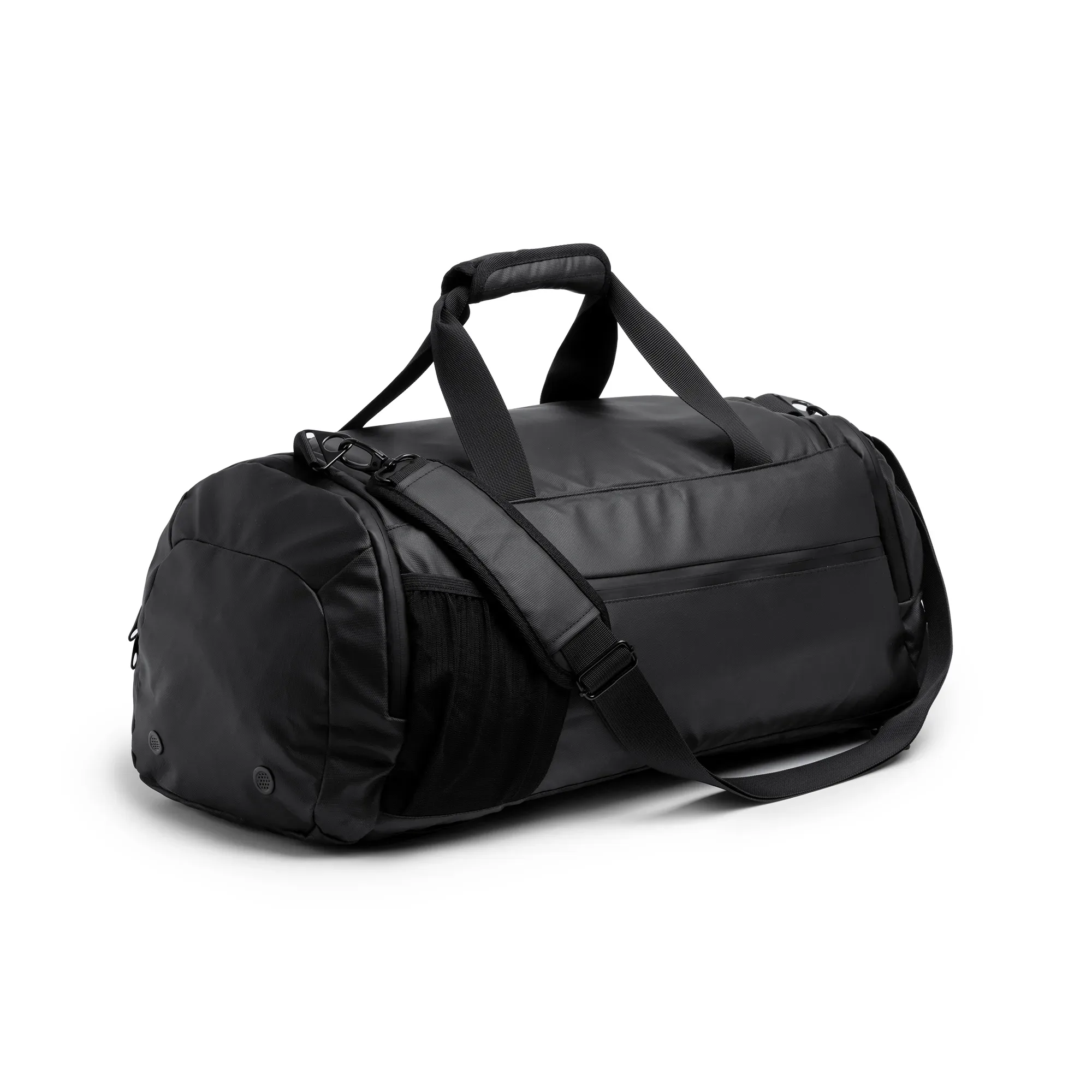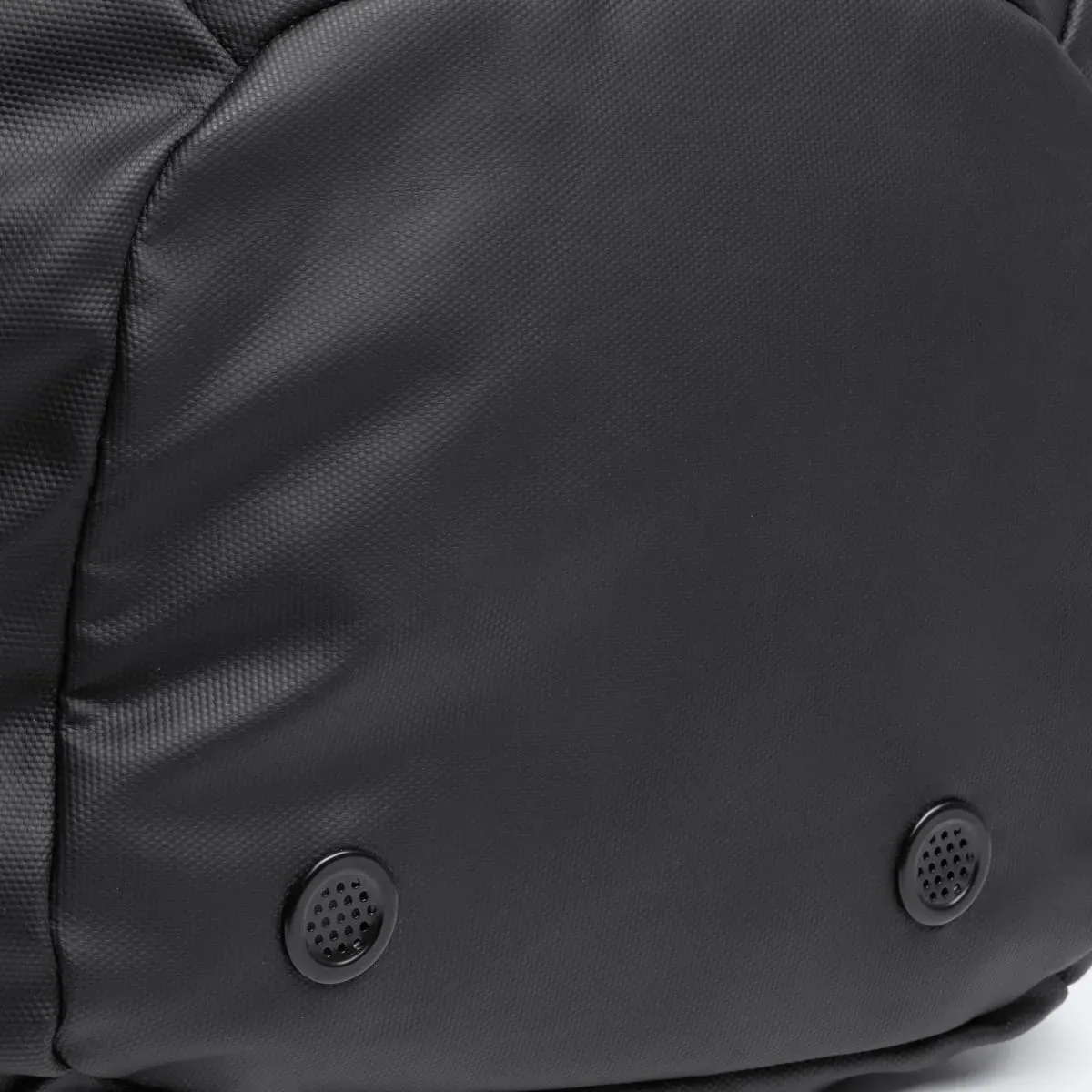 Bolso mochila multifunción realizado en PU Leather con acabado premium y resistente al agua. Cuenta con cintas acolchadas para hombros para función mochila, ocultas en un bolsillo externo, cinta adaptable y asas para adaptarse a diferentes formas de transporte. Cuenta con un amplio compartimento principal y un bolsillo acolchado específico para portátil en su interior, además de múltiples bolsillos exteriores que te permiten organizar tus objetos más pequeños y de acceso rápido. También incluye un compartimento especial para calzado. Todos los compartimentos cuentan con cremalleras impermeables.