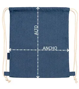 Mochila realizada en tejido vaquero reciclado con cuerdas de algodón de 8 mm.