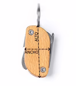 Multiherramientas con cuerpo de madera y accesorios de acero inoxidable. 5 funciones: lima, navaja, abridor, abre latas y destornillador.
