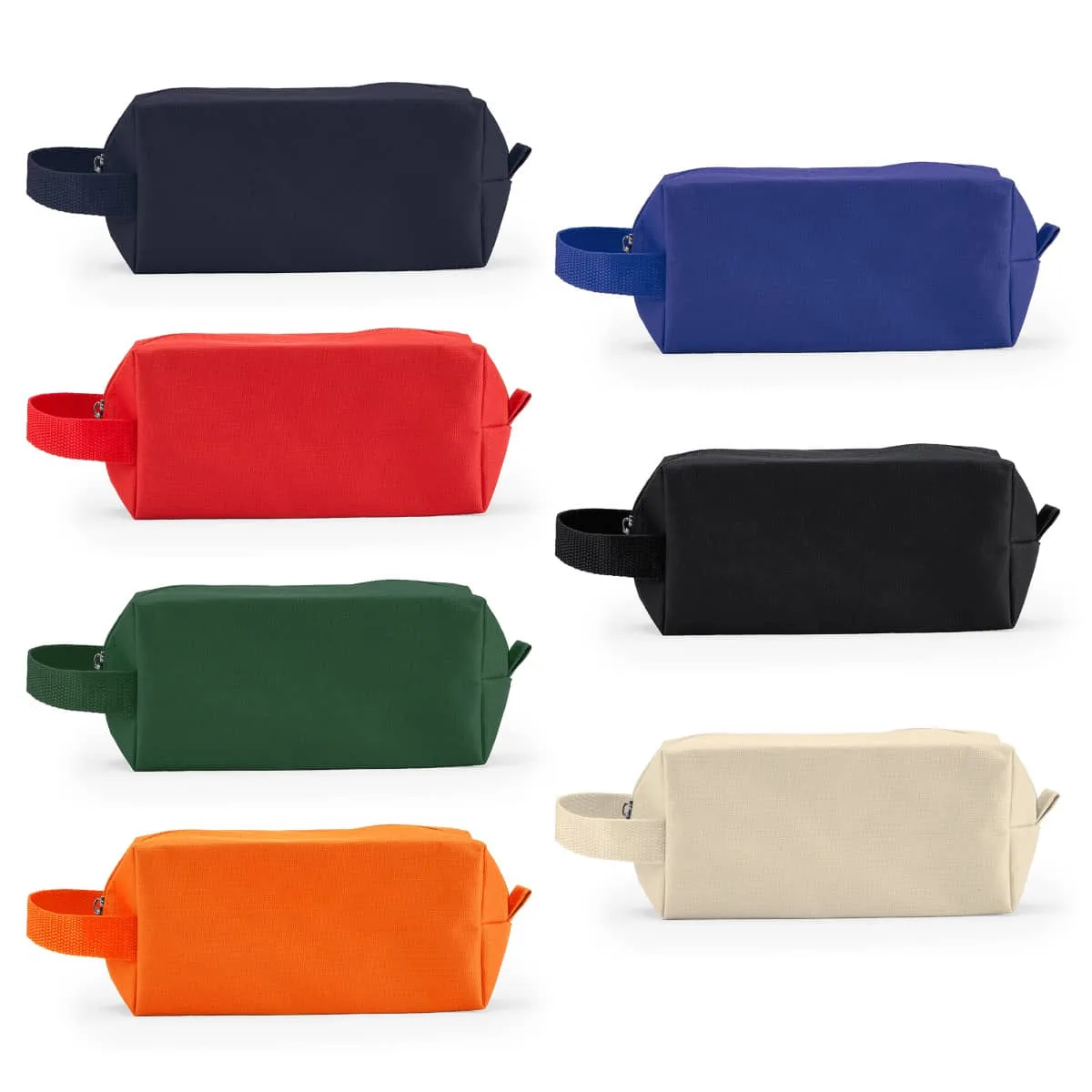 Neceser de poliéster 600D con cremallera y práctica asa de transporte.