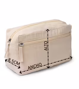 Neceser 100% algodón150 g/m² con cierre de cremallera. Doble bolsillo, principal y lateral.