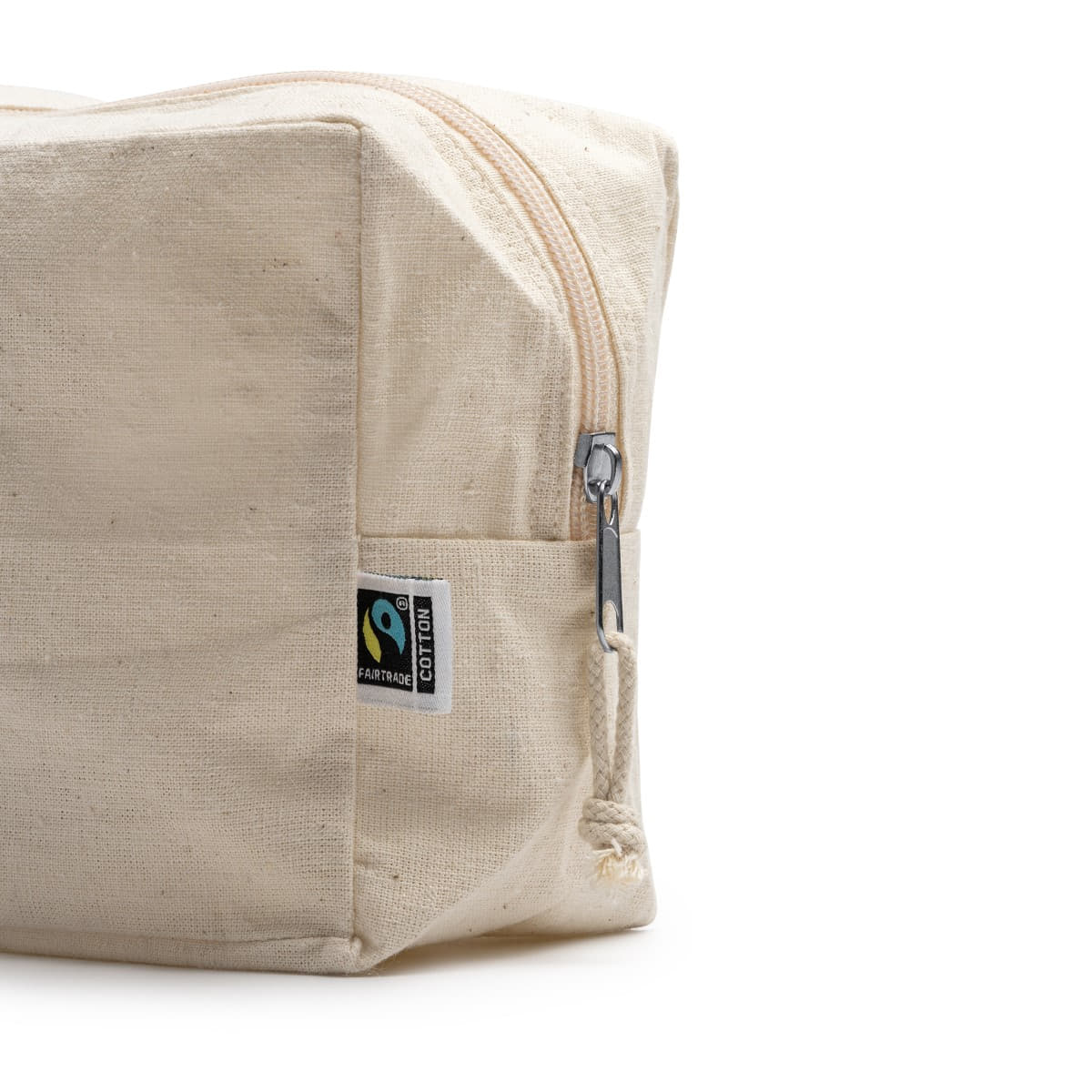 Neceser multiusos 100% algodón Fairtrade de 180 g/m². Bolsillo principal con cremallera y tirador a juego.