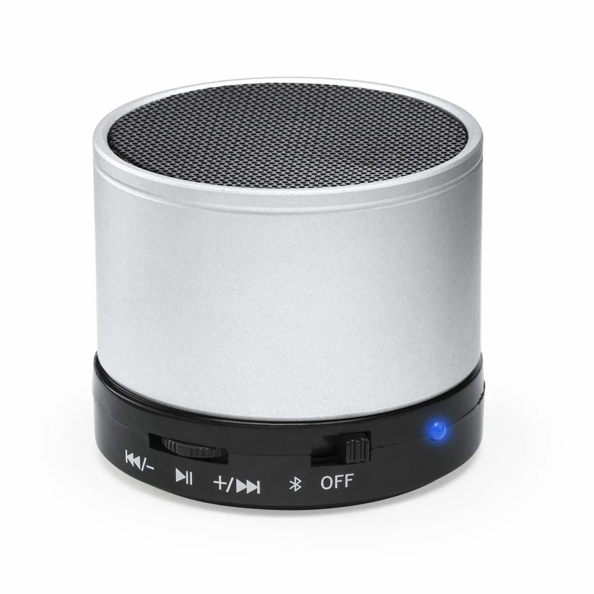 PRODUCTO QUE SE DESCATALOGARÁ EN 2025 – Altavoz inalámbrico con cuerpo metálico en acabado mate. Bluetooth 3.0. Función radio FM y manos libres. Potencía 3W. Batería recargable. Cable incluido. Presentación en caja diseño.