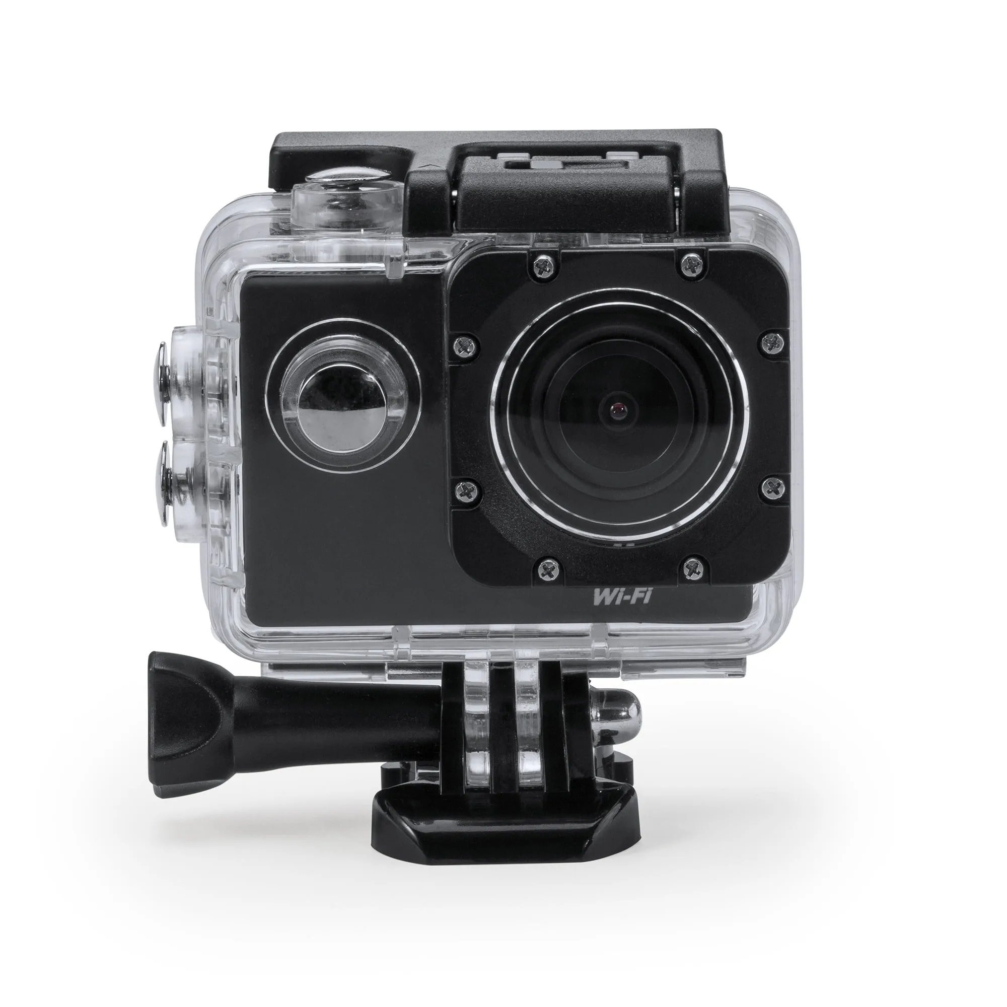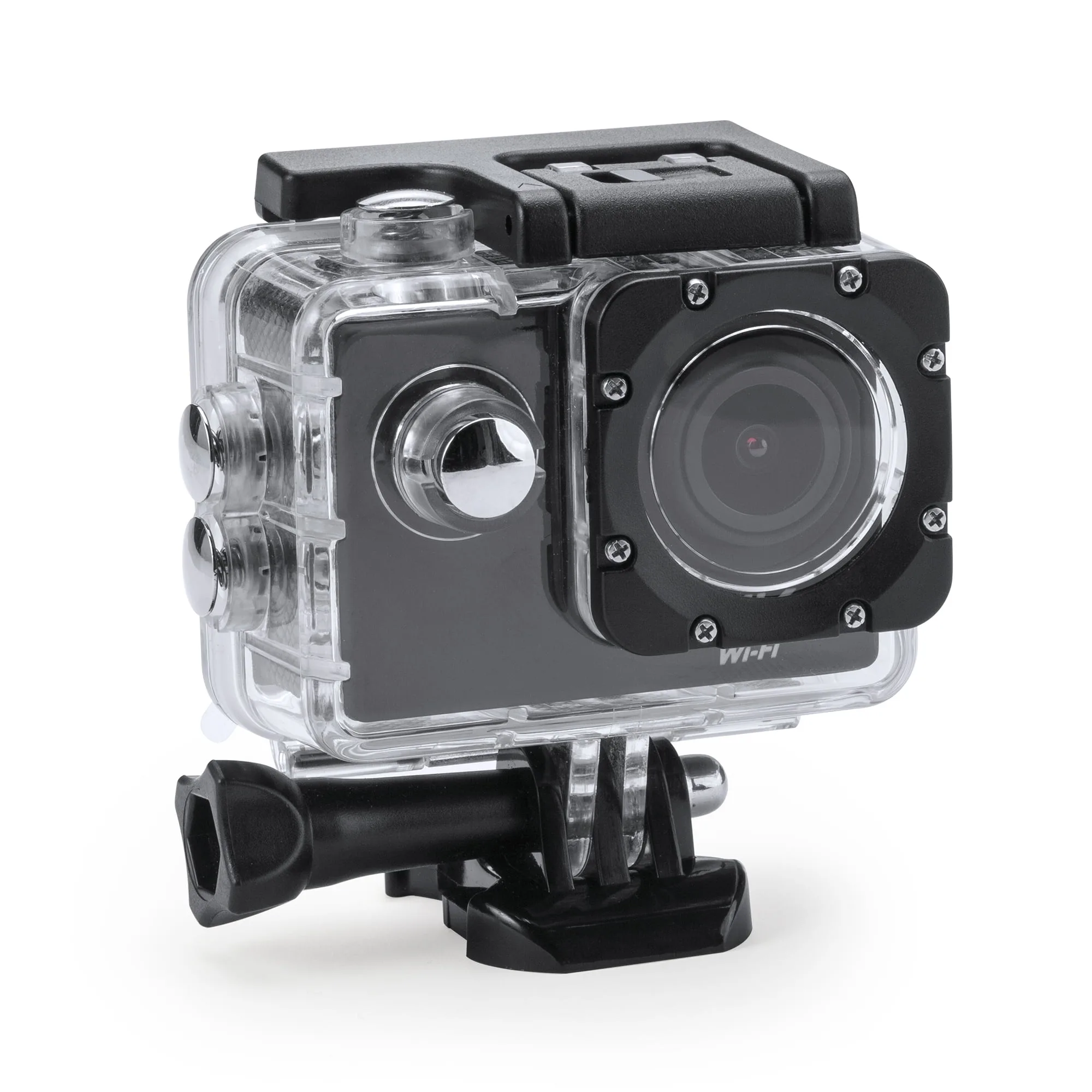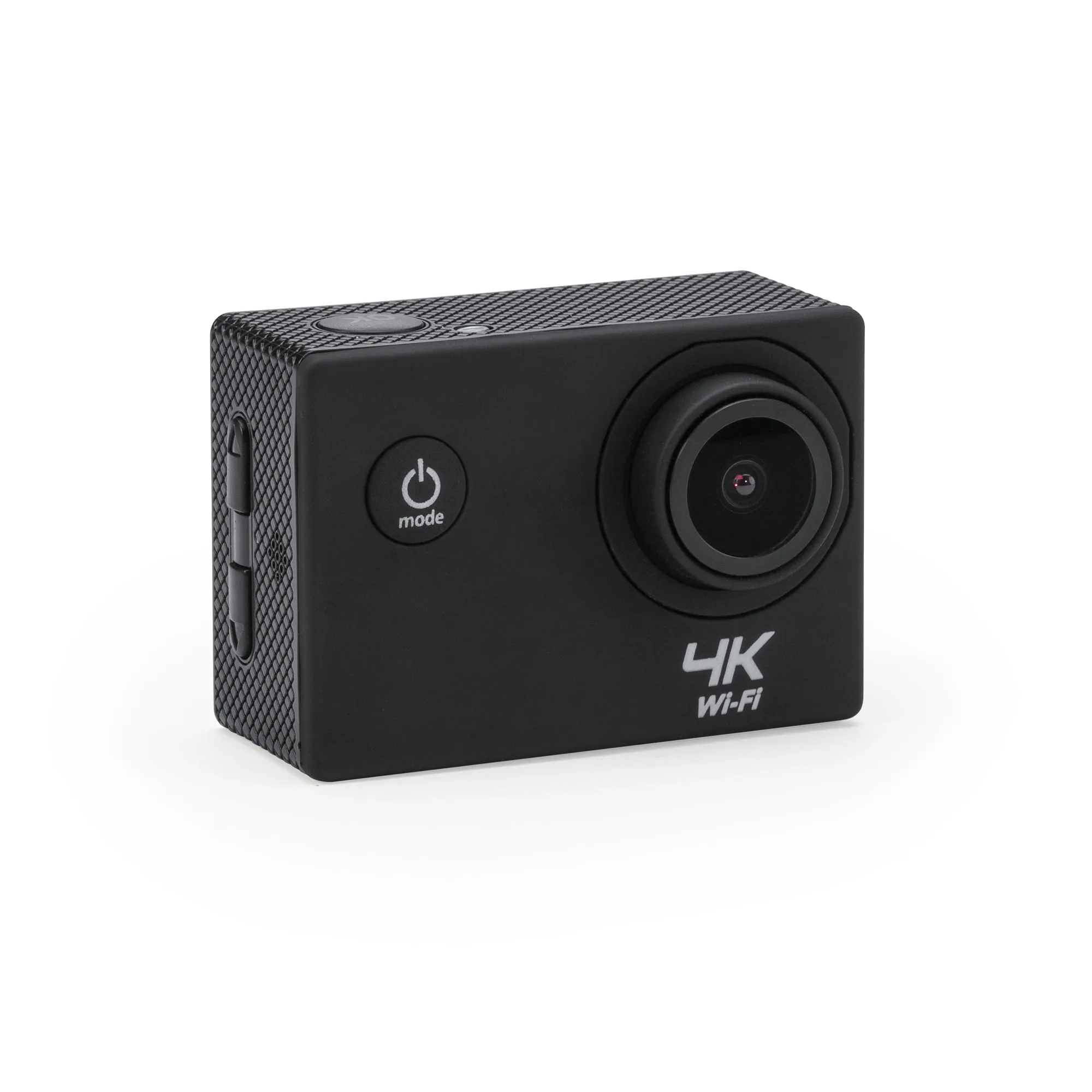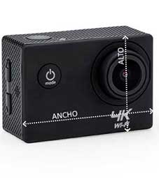 Cámara deportiva con tecnología de vídeo HD 4K y conexión Wi-Fi. Pantalla LCD 2″. Con función cámara de fotos Full HD 1080P. Incluye resistente carcasa sumergible hasta 30m y diversos accesorios de acople multifunción. Batería extraible recargable. Cable incluido. Presentación en caja diseño.