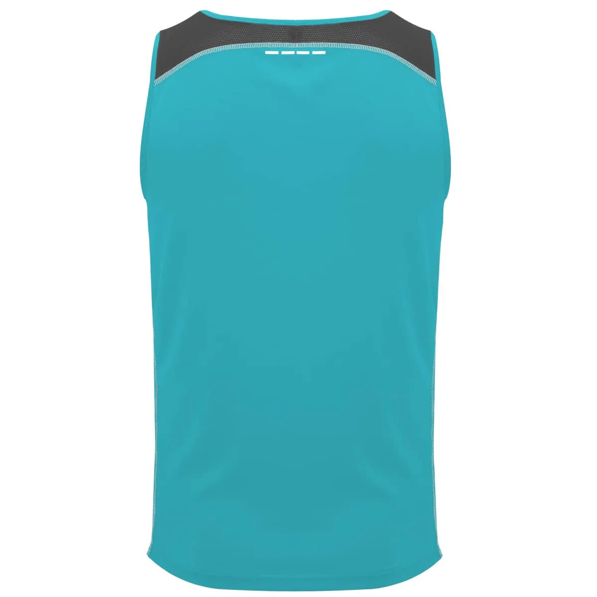 Fabricada en poliéster técnico, la camiseta técnica de tirantes con detalles reflectantes Misano, viene con cuello redondo con cubrecosturas de refuerzo.