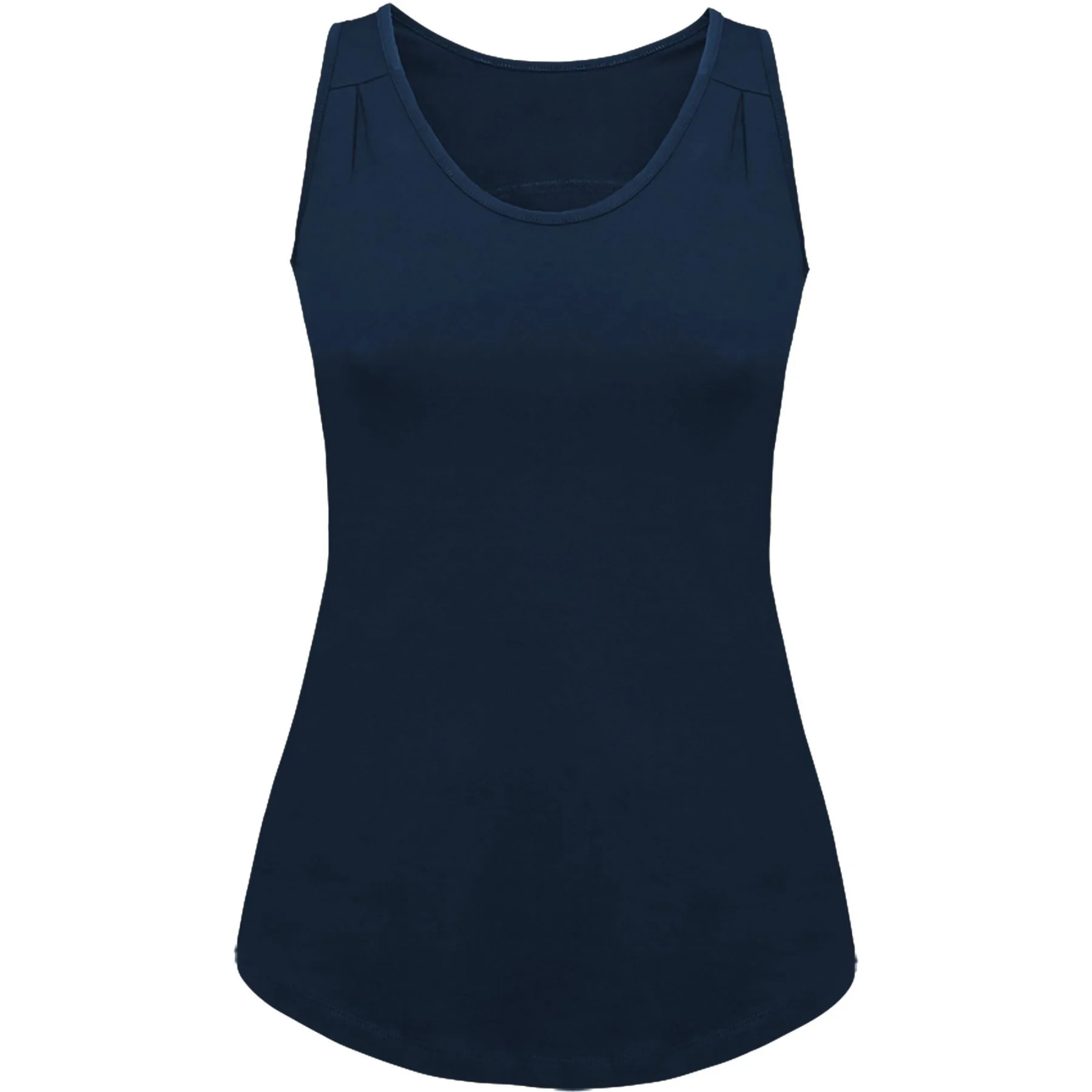 Camiseta deportiva con detalle de pliegues en tirantes. Tejido de tacto suave y agradable. Corte entallado en punto liso con costuras laterales. Bajos con forma, dándole un diseño actual.