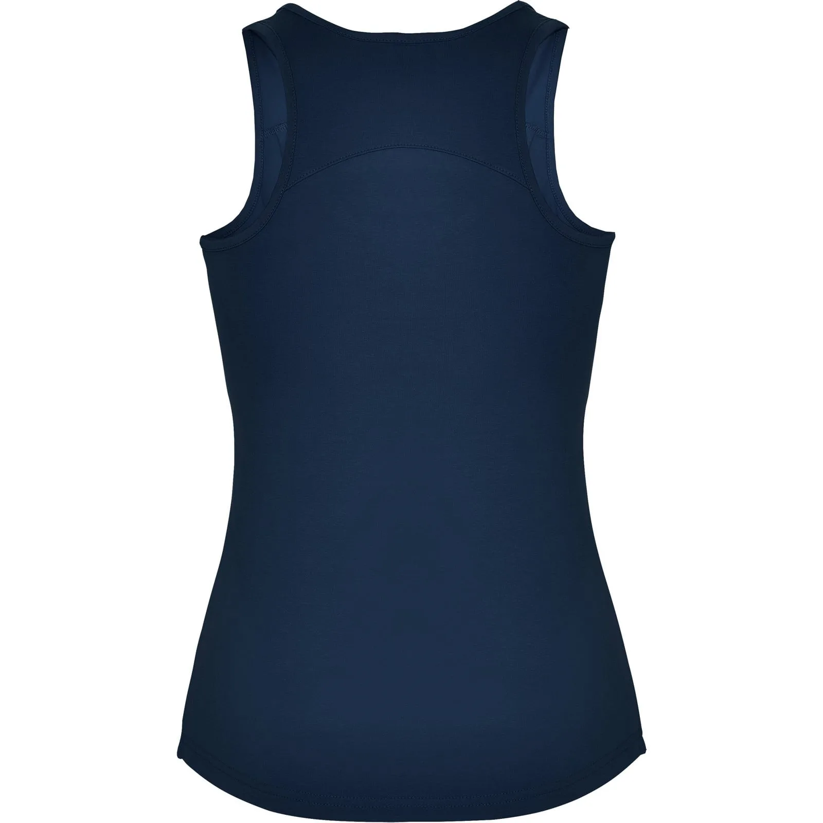 Increíble, si piensas que la camiseta deportiva con detalle de pliegues en tirantes de mujer, viene con la garantía de la casa Roly.