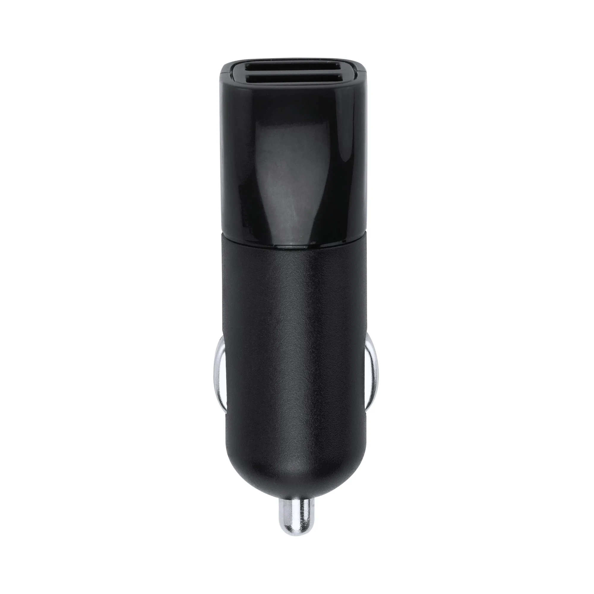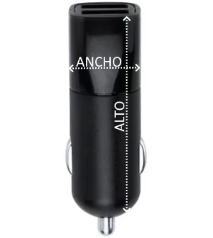 Cargador para coche en ABS con dos salidas USB. 2100 mAh. Presentación en caja blanca.