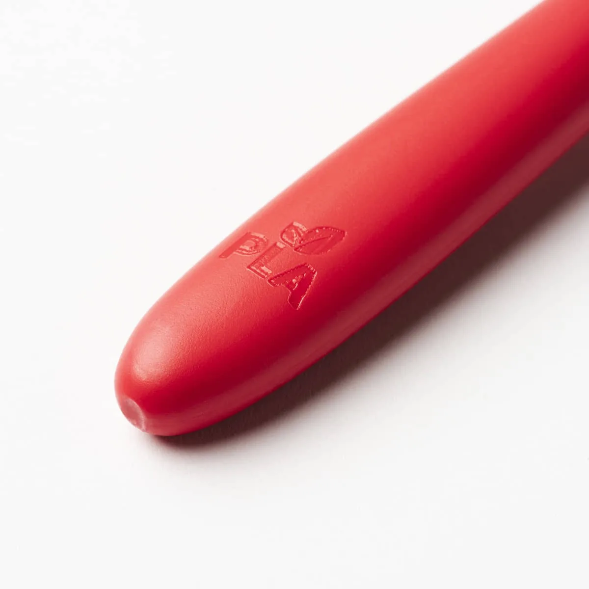 Cepillo de dientes con cuerpo de PLA. Cerdas blancas de dureza suave.