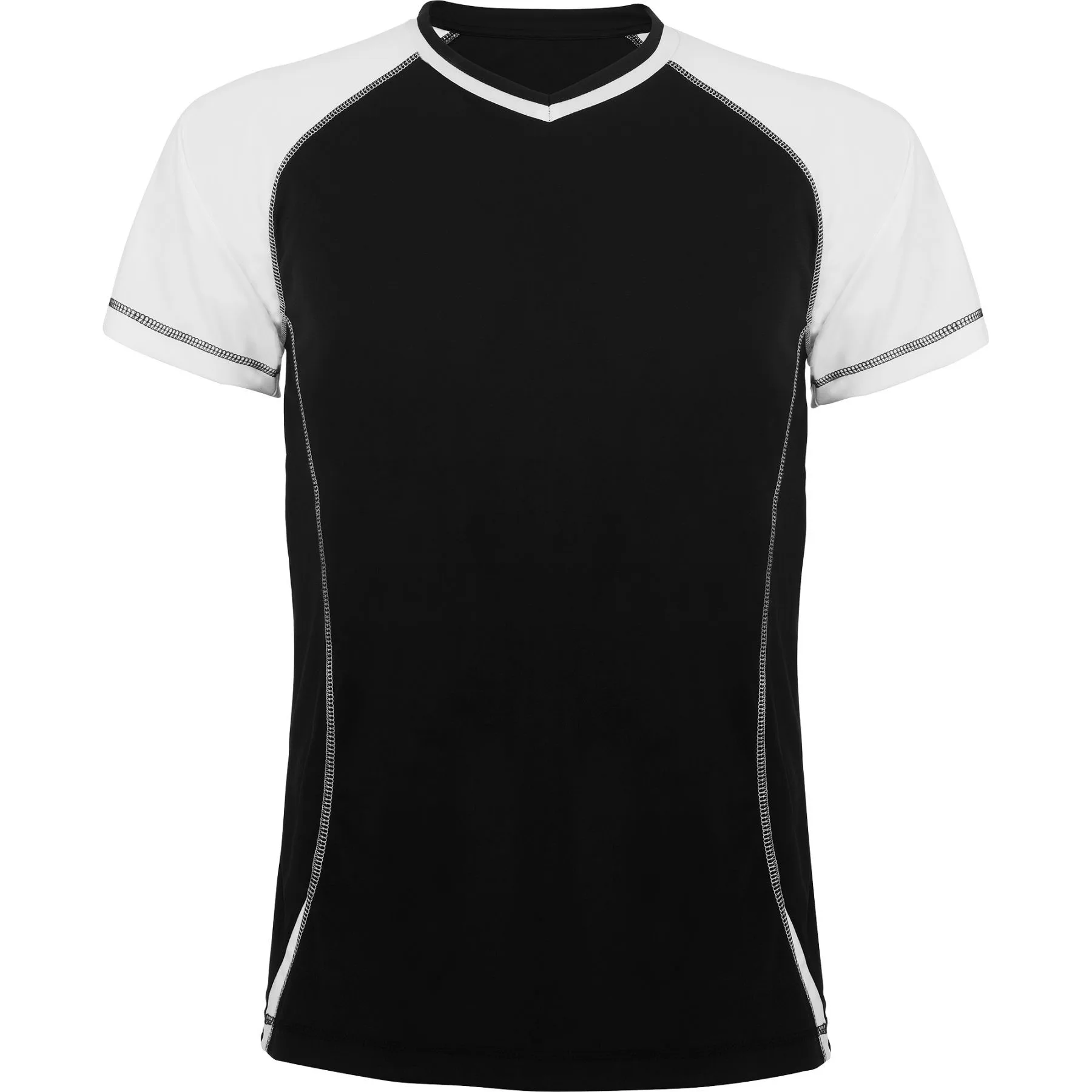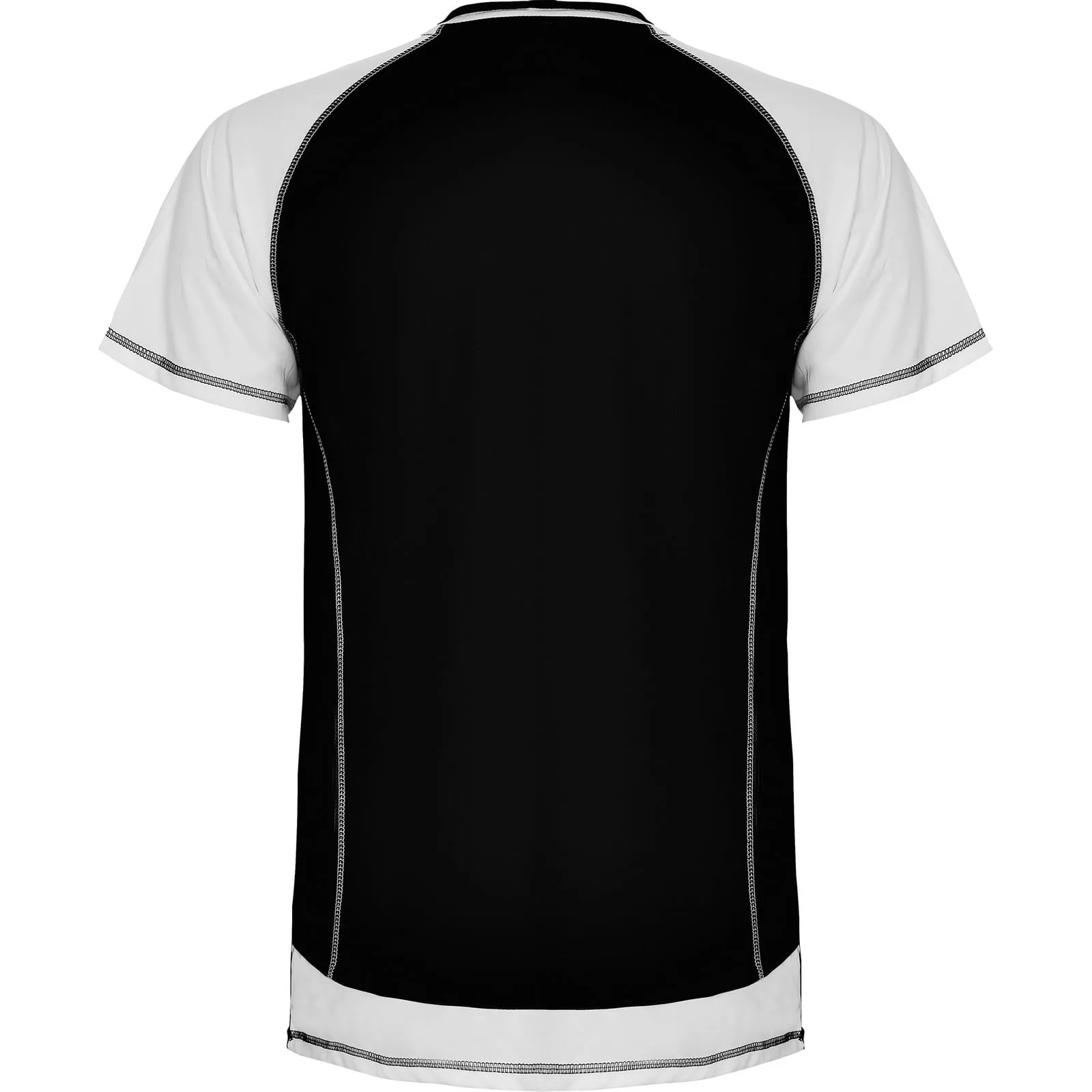 Conjunto deportivo unisex combinado, con tejido técnico liso de fibra transpirable, muy agradable al tacto y de fácil secado. 1.- Camiseta con manga ranglán. 2.- Pespuntes contrastados en camiseta y pantalón.