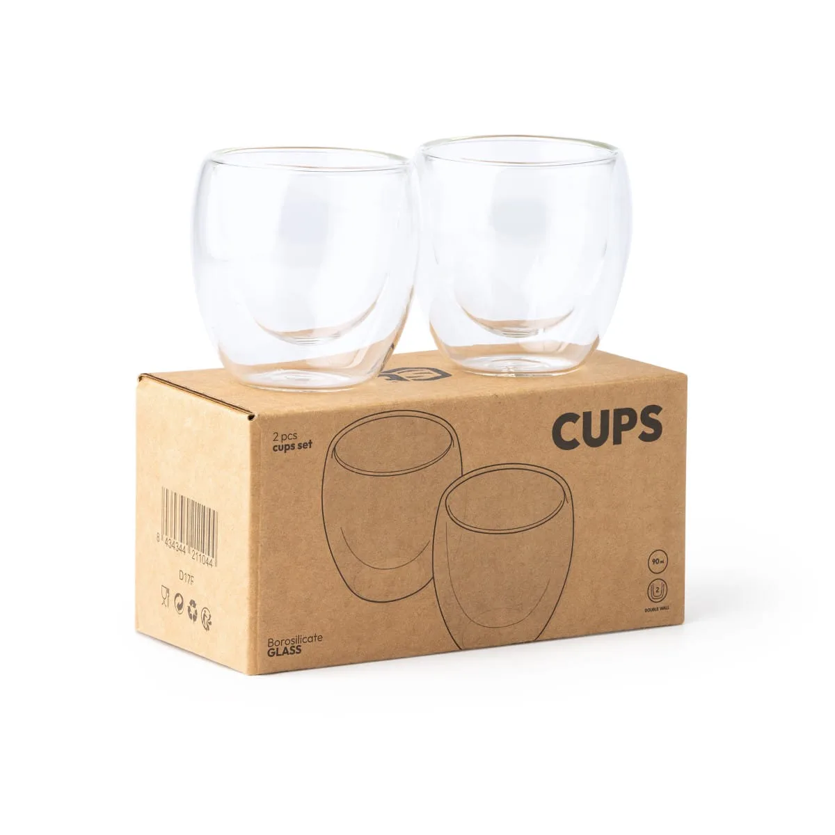 ESTE PRODUCTO SE DESCATALOGARÁ EN 2025 – Set de 2 vasos de doble pared realizados en cristal borosilicato. Capacidad 90 ml.
