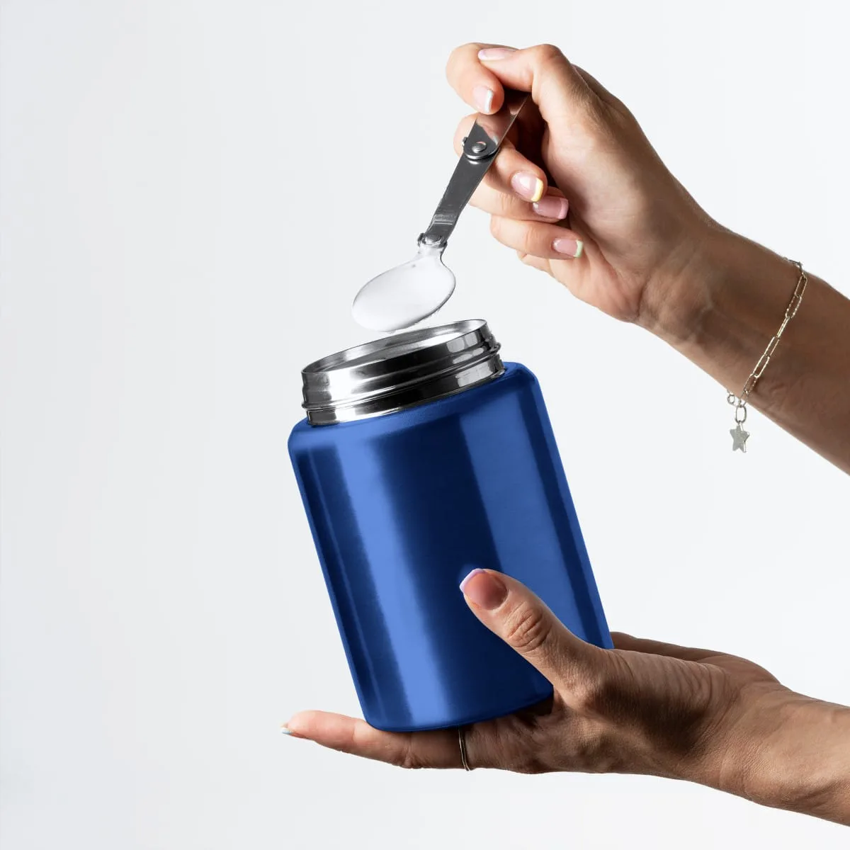 ESTE PRODUCTO SE DESCATALOGARÁ EN 2025 – Termo multiusos ideal para comida de acero inoxidable 304 doble pared. Doble tapa con cuchara plegable de acero inoxidable incluida. Capacidad 450 ml.