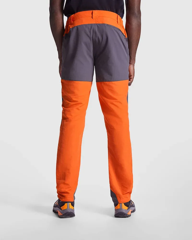 Pantalón Unisex de Trekking combinado en tres tejidos. Cintura elástica en los laterales. Trabillas para cinturón. Dos bolsillos laterales con cremalleras invertidas. Bolsillo trasero derecho con cremalleras invertidas. Tejido strech en piezas frontales y trasero que permiten una gran libertad de movimiento.