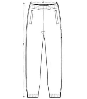 Cinturilla y bajo de pernera elásticos del mismo tejido Cordones planos en el color del tejido con la punta doblada para un remate cuidado Cordones dentro de la cinturilla Ojales bordados Bolsillos delanteros de ojal Bolsillo plastrón trasero Pespunte doble estrecho en las costuras laterales y el bajo