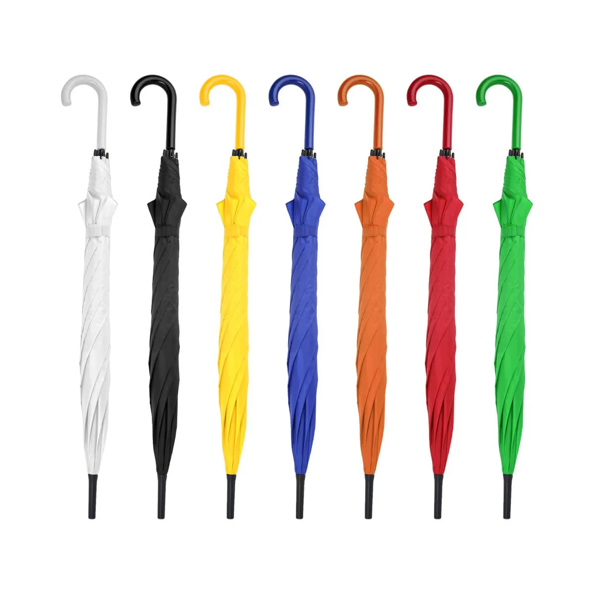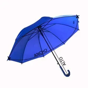 Paraguas con tela y mango del mismo color. Varillas y terminaciones en negro. Cierre con velcro y apertura automática.