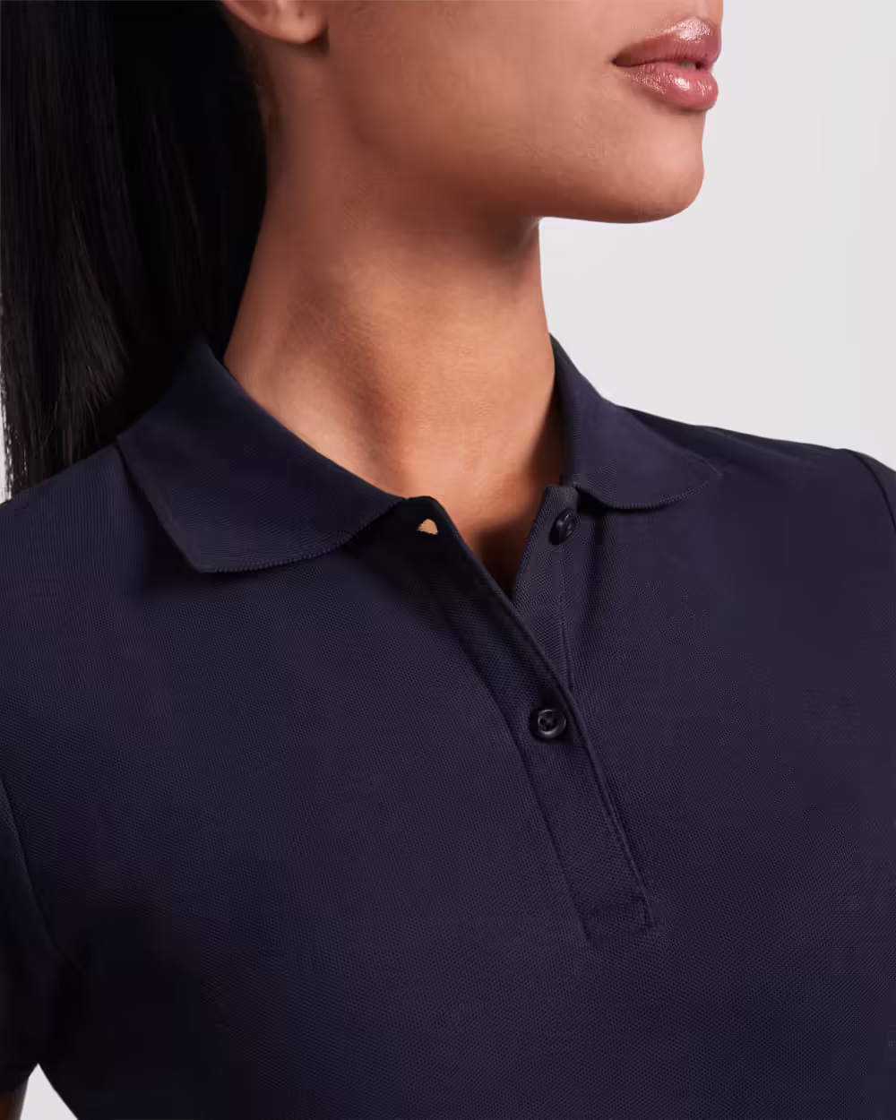 Polo de mujer entallado de manga corta en algodón orgánico certificado OCS. Cuello y ribete de mangas en canalé 1×1. Tapeta con 2 botones. Cubrecosturas reforzado en cuello. Aperturas laterales en el bajo.