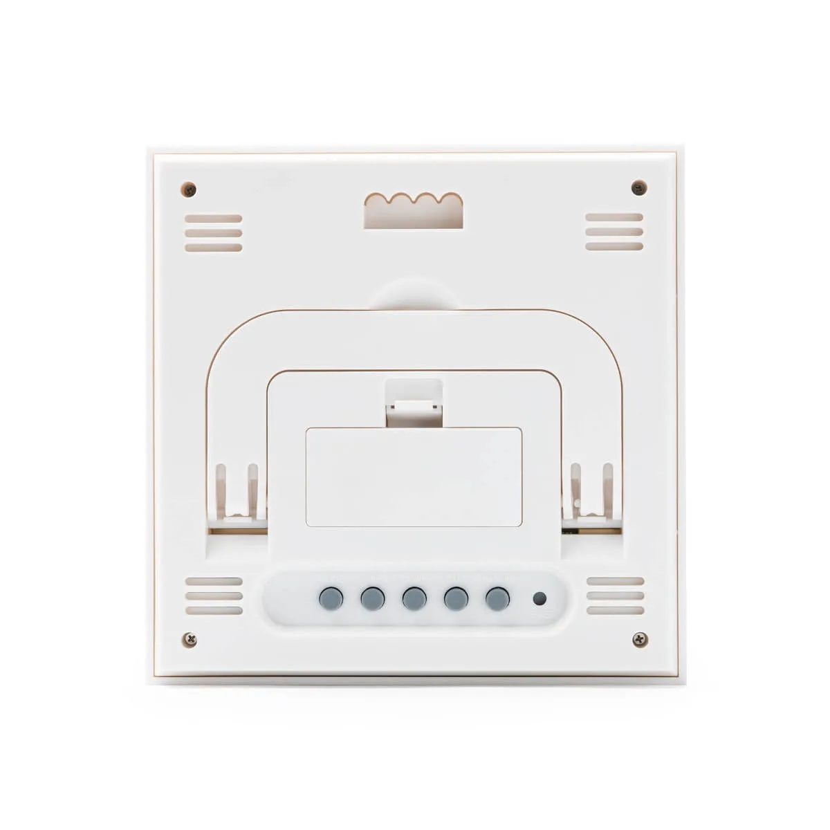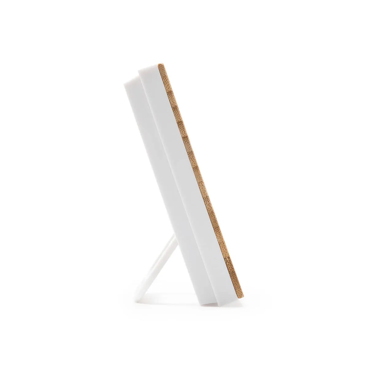 Estación meteorológica con carcasa frontal de bambú. Función reloj, calendario y alarma con sensores de temperatura y humedad.
