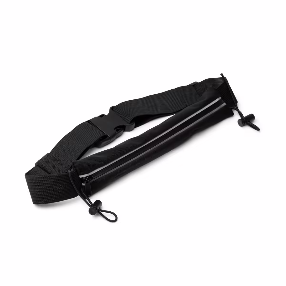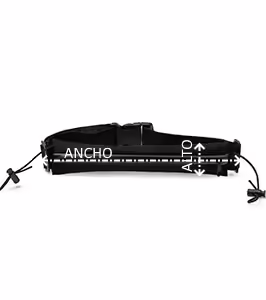 Riñonera portadorsal realizada en políester spandex. Con bolsillo con banda reflectante y cierre de cremallera resistente al agua. Incluye elástico para dorsal.