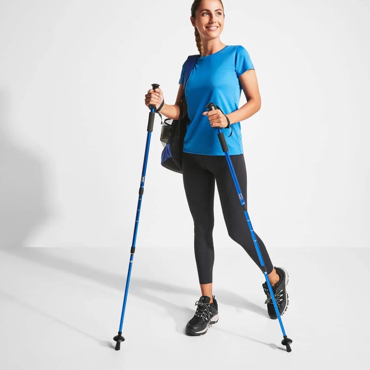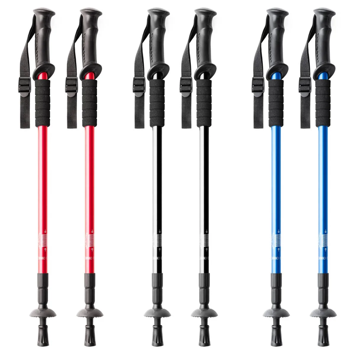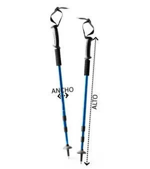 Set de bastones plegables en aluminio con sistema de amortiguación. Agarre ergonómico y cinta de seguridad ajustable. Incluye accesorio para nieve. Superficie de contacto con el suelo reforzada.