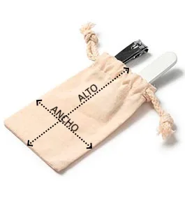 Set de manicura en bolsa de algodón con cierre de cordón ajustable. Incluye lima y cortaúñas.