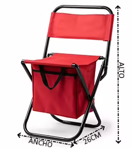 Silla plegable para exterior realizada en poliéster 600D. En la parte inferior incluye nevera con interior isotérmico con cierre de cremallera para mantener tus bebidas frías mientras descansas. Cuenta con asa y un mecanismo de sencillo plegado para hacer más fácil su transporte y guardado.