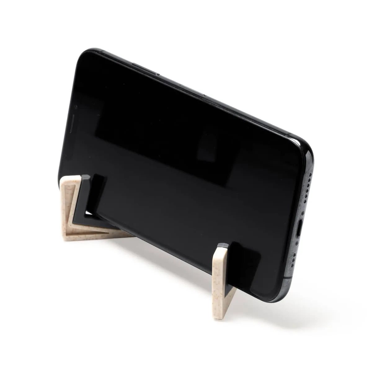 Soporte para móvil plegable hecho en fibra de trigo con bordes superiores antideslizantes. El soporte perfecto para ver lo que desees de una manera más cómoda.