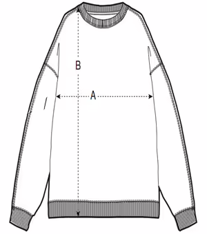 Mangas montadas Hombros caídos Costillas 1X1 en el cuello, dobladillos de las mangas y dobladillo inferior Doble costura en todas las costuras Cinta de grosgrain en la parte interior del cuello Media luna de la misma tela en la nuca