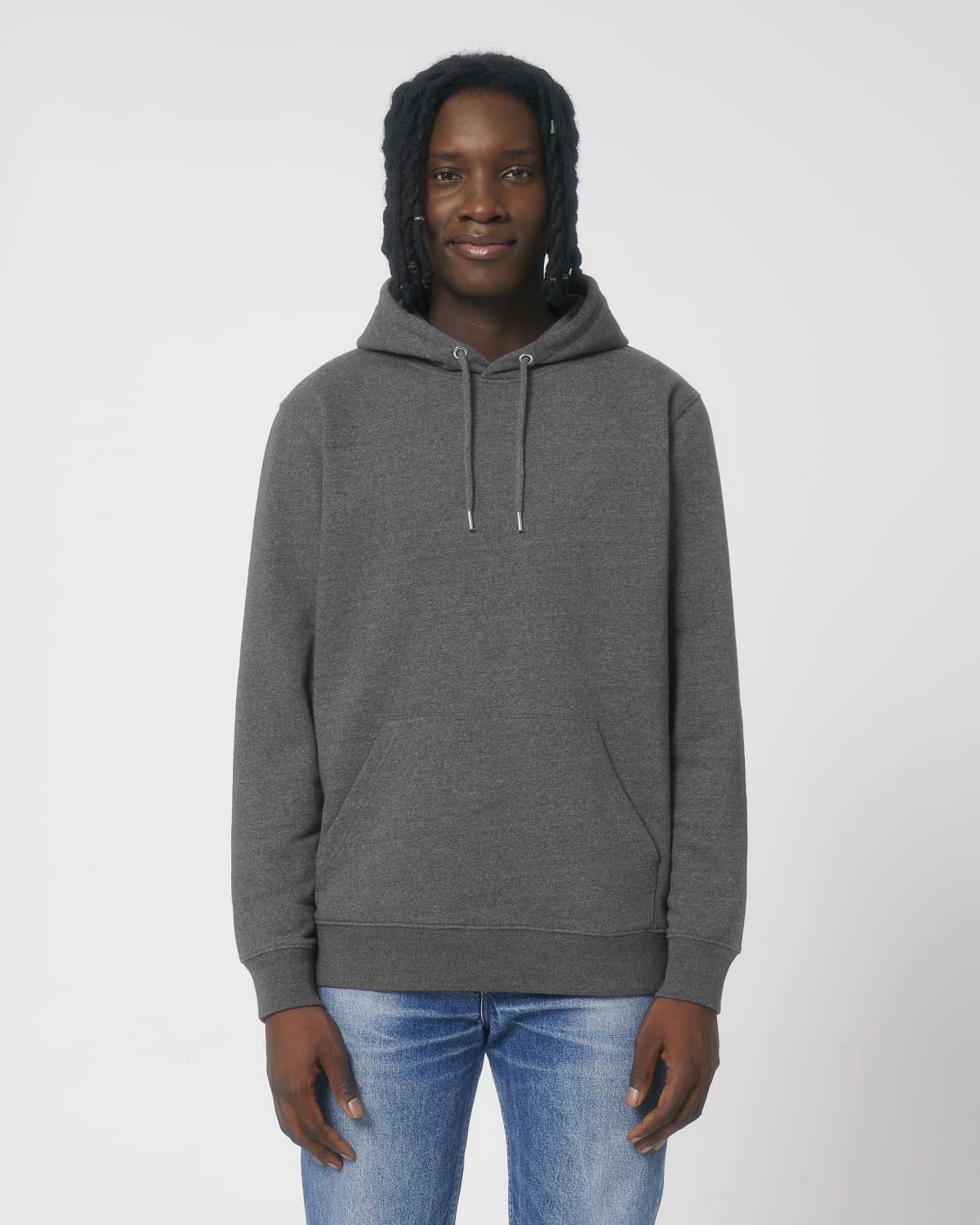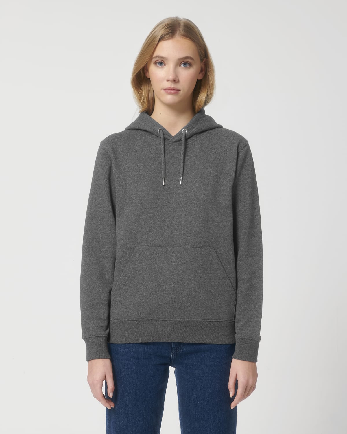 LA SUDADERA RECICLADA CON CAPUCHA UNISEX Confeccionada con residuos orgánicos de corte propios Manga pegada Capucha doble en el tejido principal Cordón redondo en el mismo tono rematado con extremos de acabado metálico Ojales metálicos Bies interior de espiga en la parte trasera del cuello Media luna del tejido principal en la zona trasera del cuello Pespunte simple en cuello y en apertura de la capucha Canalé 1×1 en puños y bajo Pespunte doble en sisas, puños y bajo Bolsillo canguro en la parte delantera Las fibras recicladas hacen que la superficie del tejido sea menos lisa