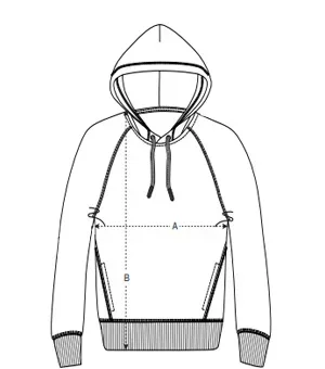 Manga ranglán Capucha forrada en tejido principal Cordón redondo, en el mismo tono, rematado con extremos de acabado metálico Ojales metálicos Bies interior de espiga en el cuello Media luna interior en tejido principal Costuras laterales en diagonal con bolsillos Canalé 1×1 en puños y bajo Pespunte en todas las costuras