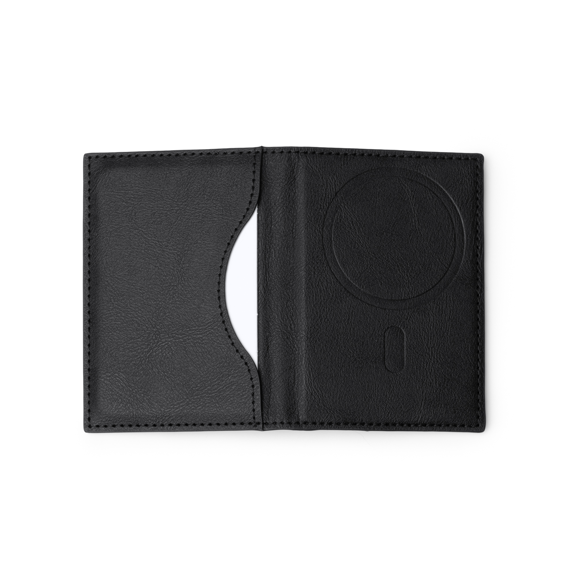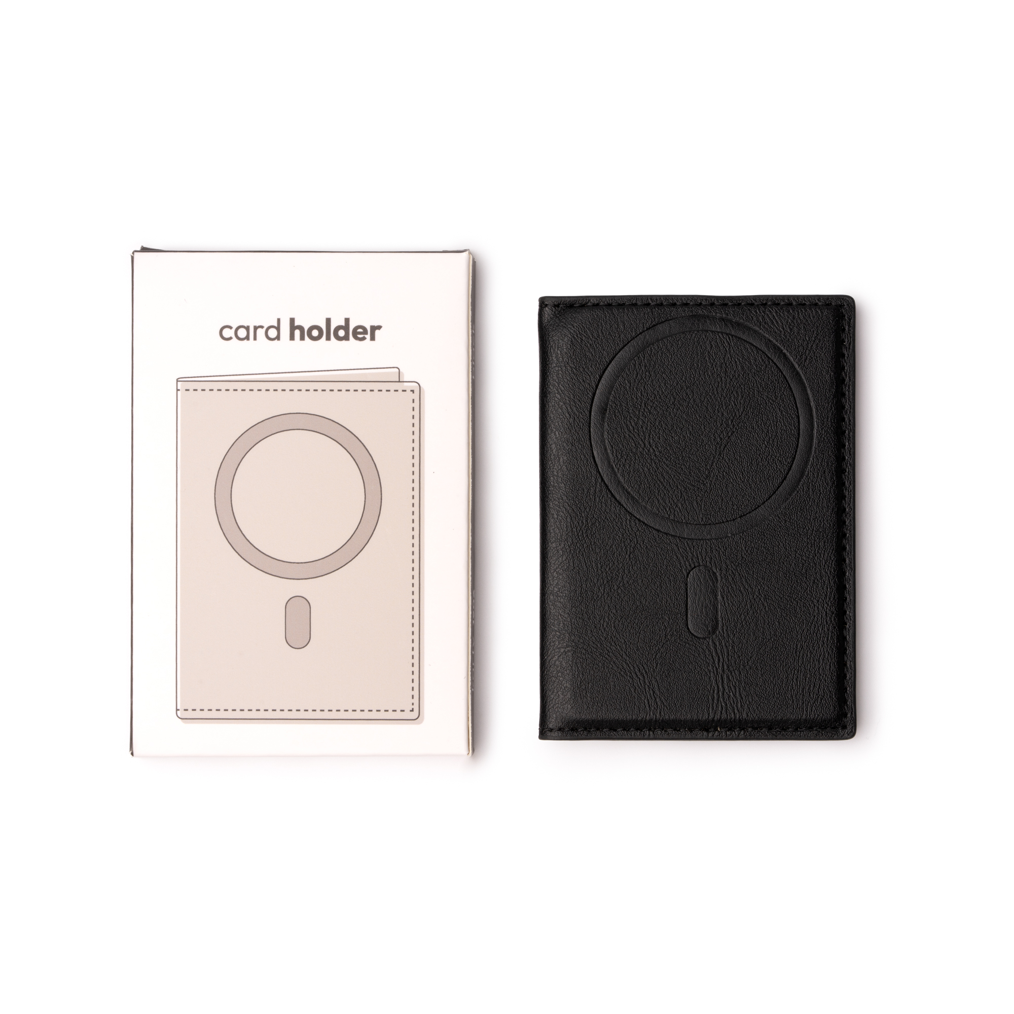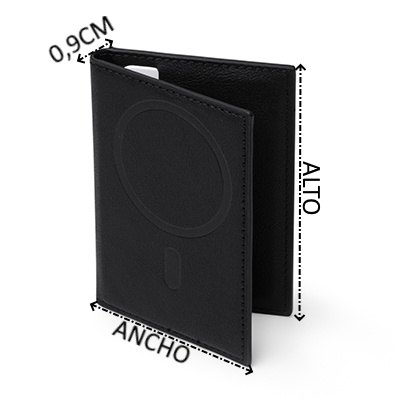 Tarjetero magnético plegable elaborado en RPET. Accesorio ideal para llevar tus tarjetas junto a tu teléfono gracias a su sistema magnético. Con tres compartimentos interiores y uno exterior para distintas tarjetas.