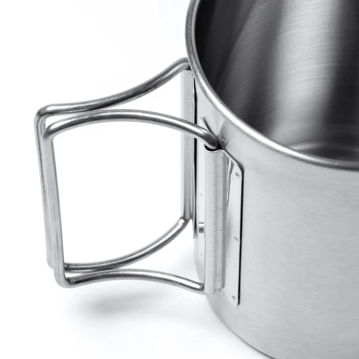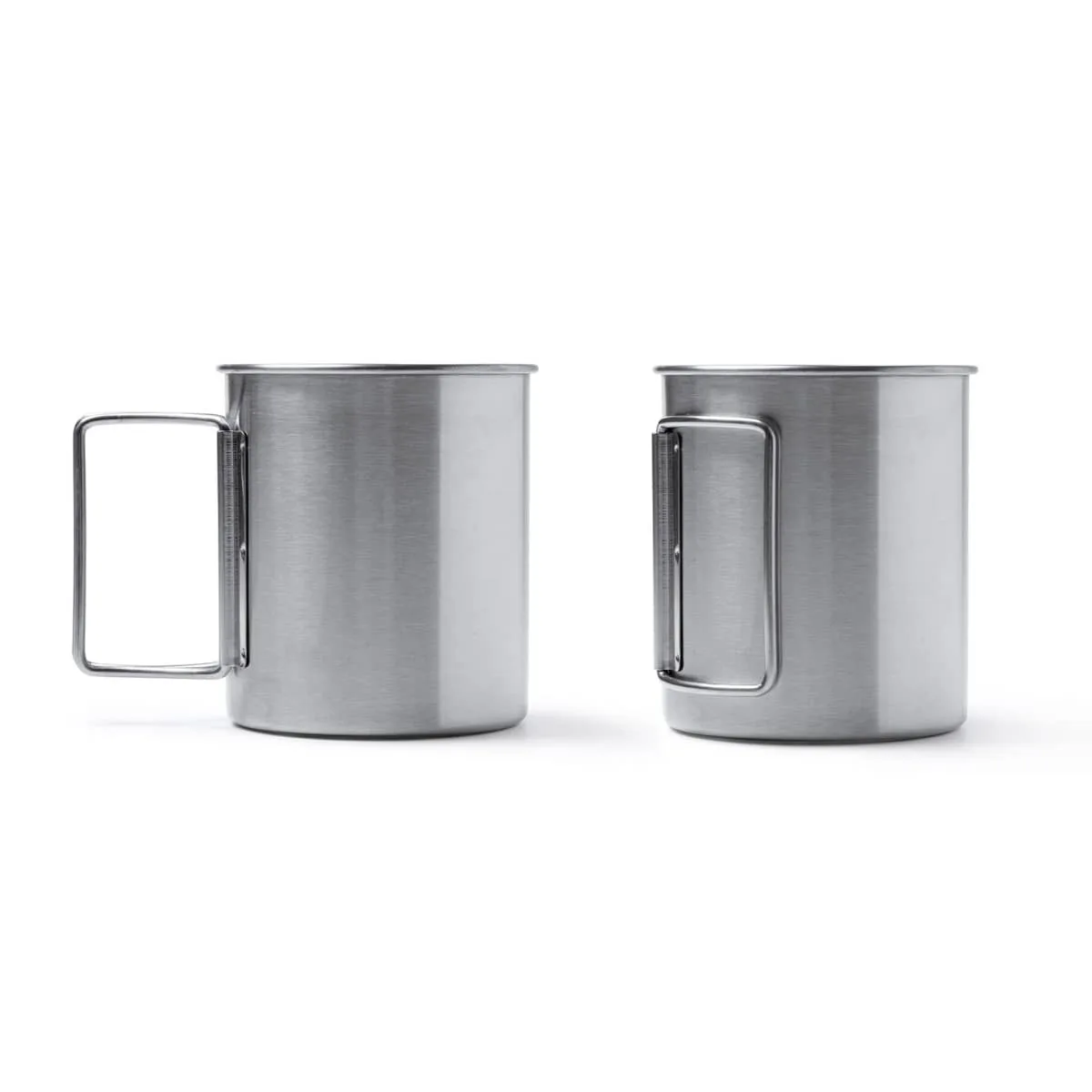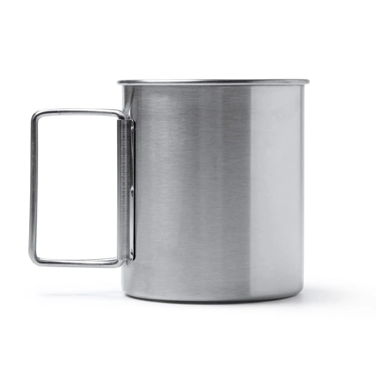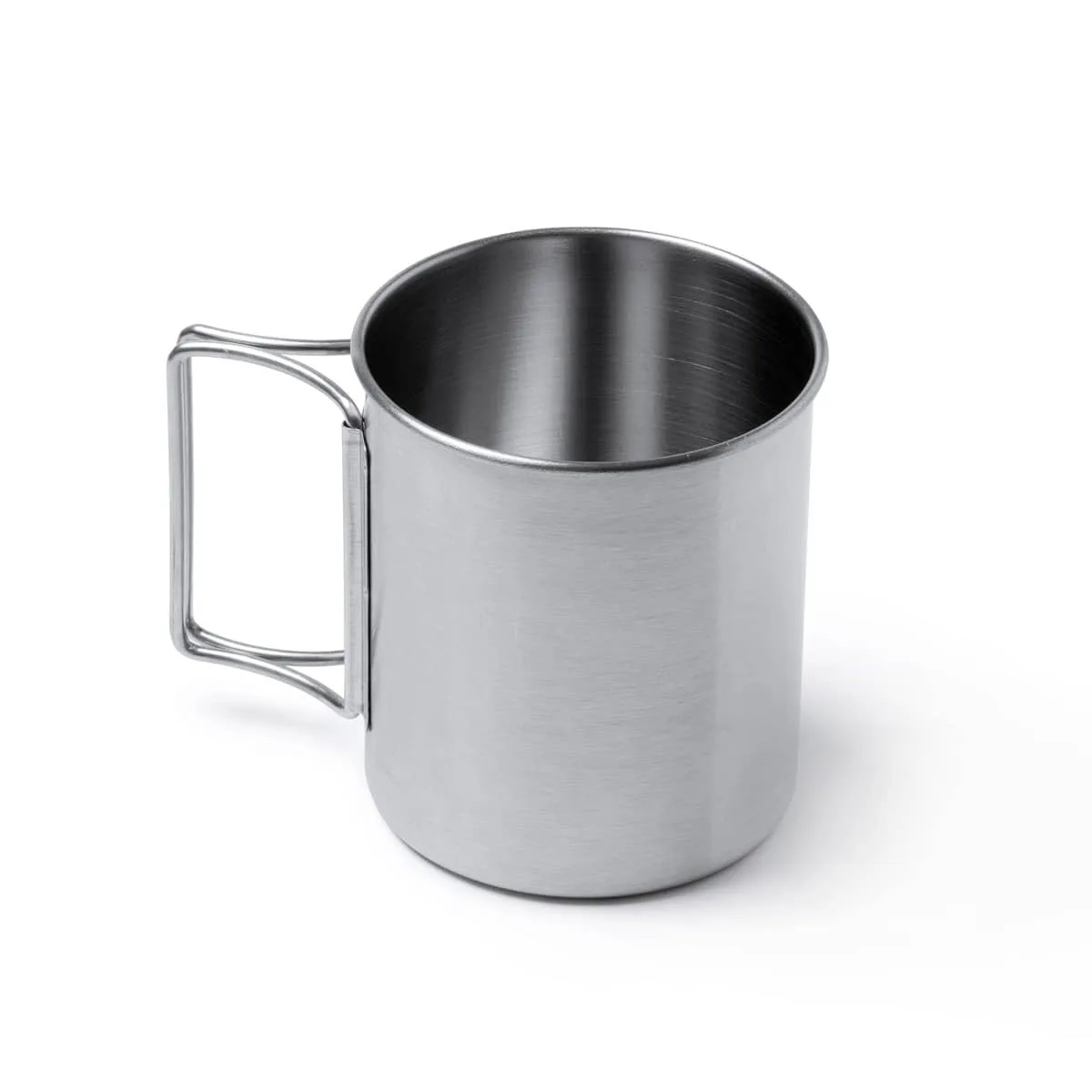 PRODUCTO QUE SE DESCATALOGARÁ CUANDO SE AGOTEN LAS EXISTENCIAS – Taza de acero inoxidable 304 con asas plegables. Capacidad 450 ml. Idónea taza para acampada o aventura.