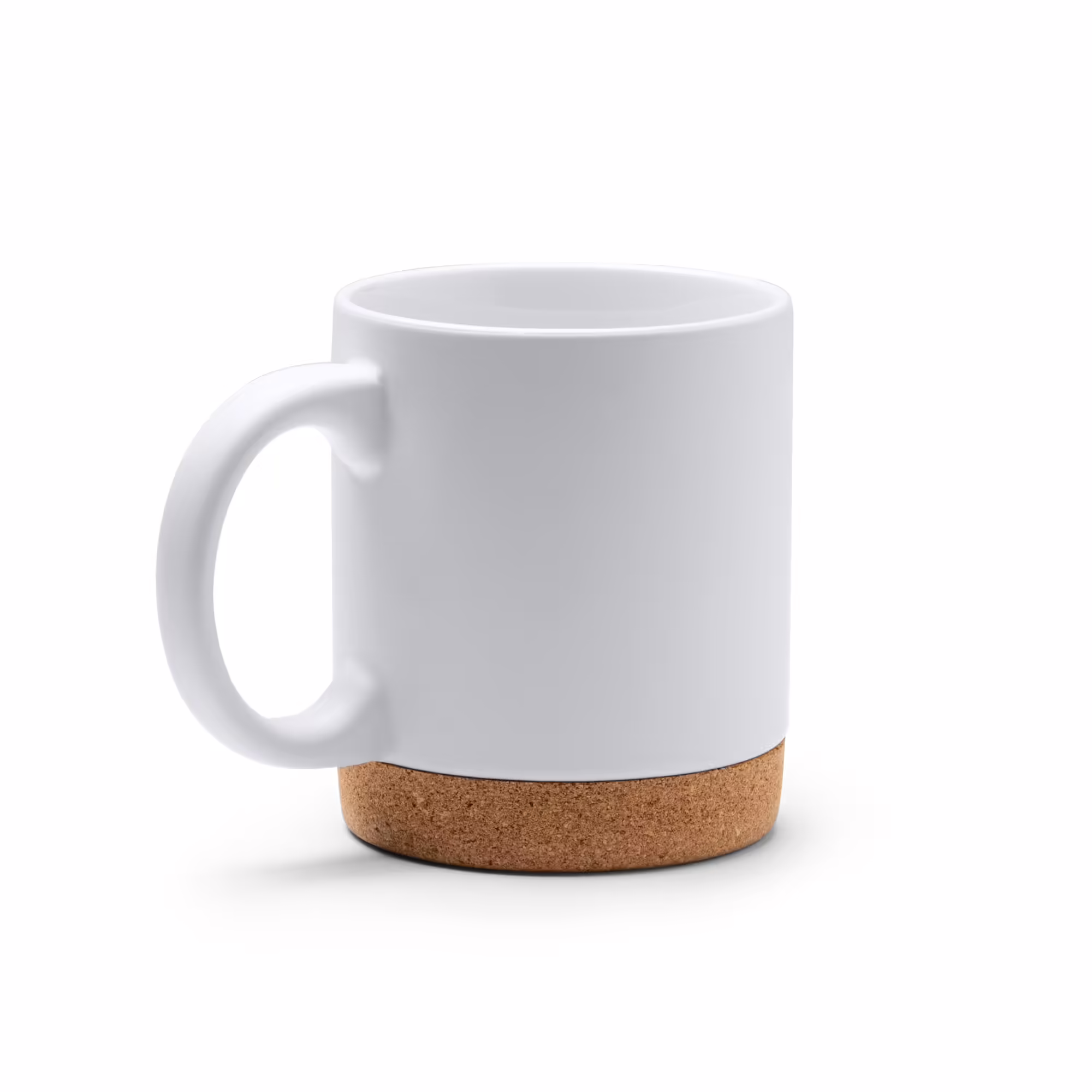 La taza de cerámica, especial para sublimación, presenta un acabado brillante y una capacidad de 320 ml. Su base de corcho extraíble proporciona estabilidad y protección contra el calor. Ideal para personalización, esta taza combina funcionalidad y estilo, siendo perfecta para regalos personalizados o uso diario, tanto en el hogar como en la oficina.