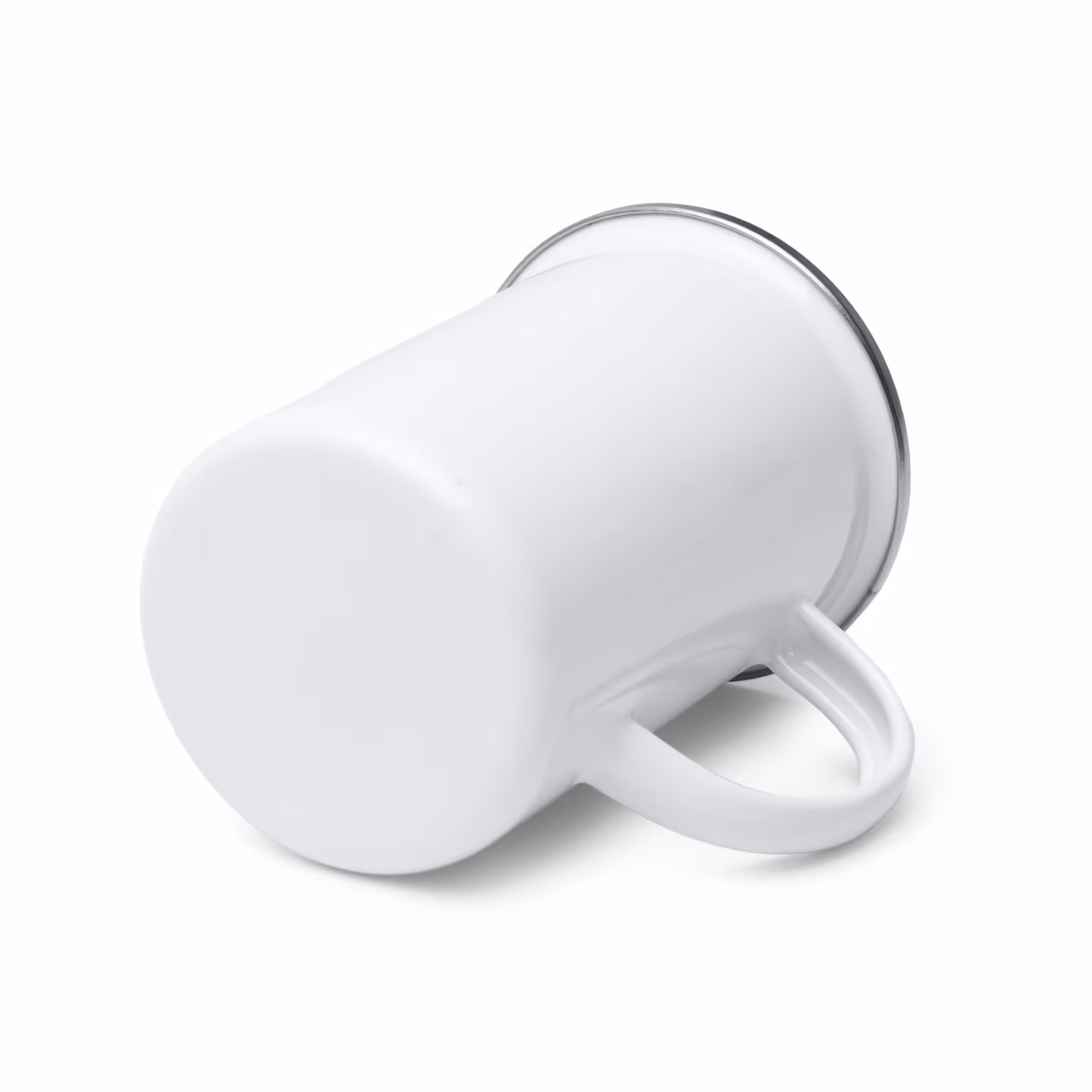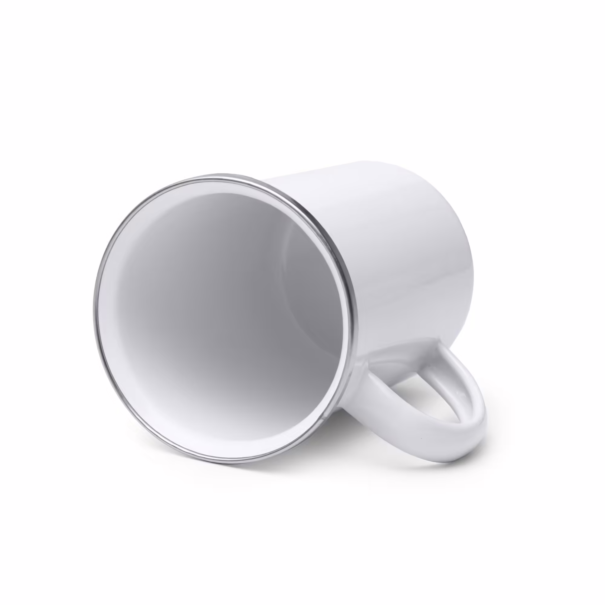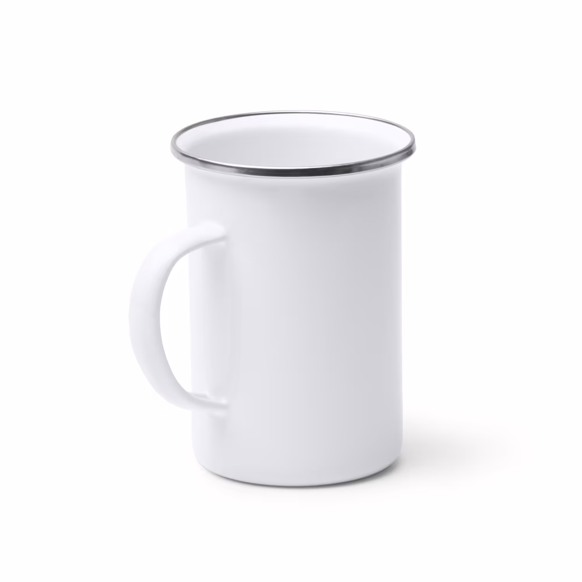 Taza alta metálica esmaltada con borde redondeado en color plata. Capacidad 380ml. Cuenta con recubrimiento especial para sublimación. Gracias a su composición en metal, es una opción perfecta para tomar bebidas a una temperatura óptima con el mejor logotipo promocional.
