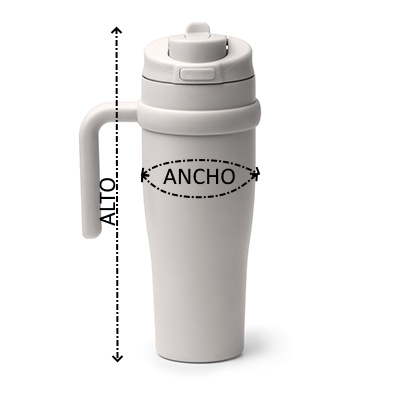 Taza térmica elaborada en acero inoxidable 304 reciclado de doble pared. Con capacidad para 900 ml. Cuenta con apertura mediante botón y pajita extensible adicional. Con un asa amplia a conjunto, que hace más cómodo su uso.