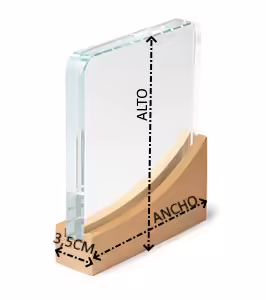 Trofeo de cristal de diseño rectangular con base de bambú. Incluye estuche de presentación diseño kraft.